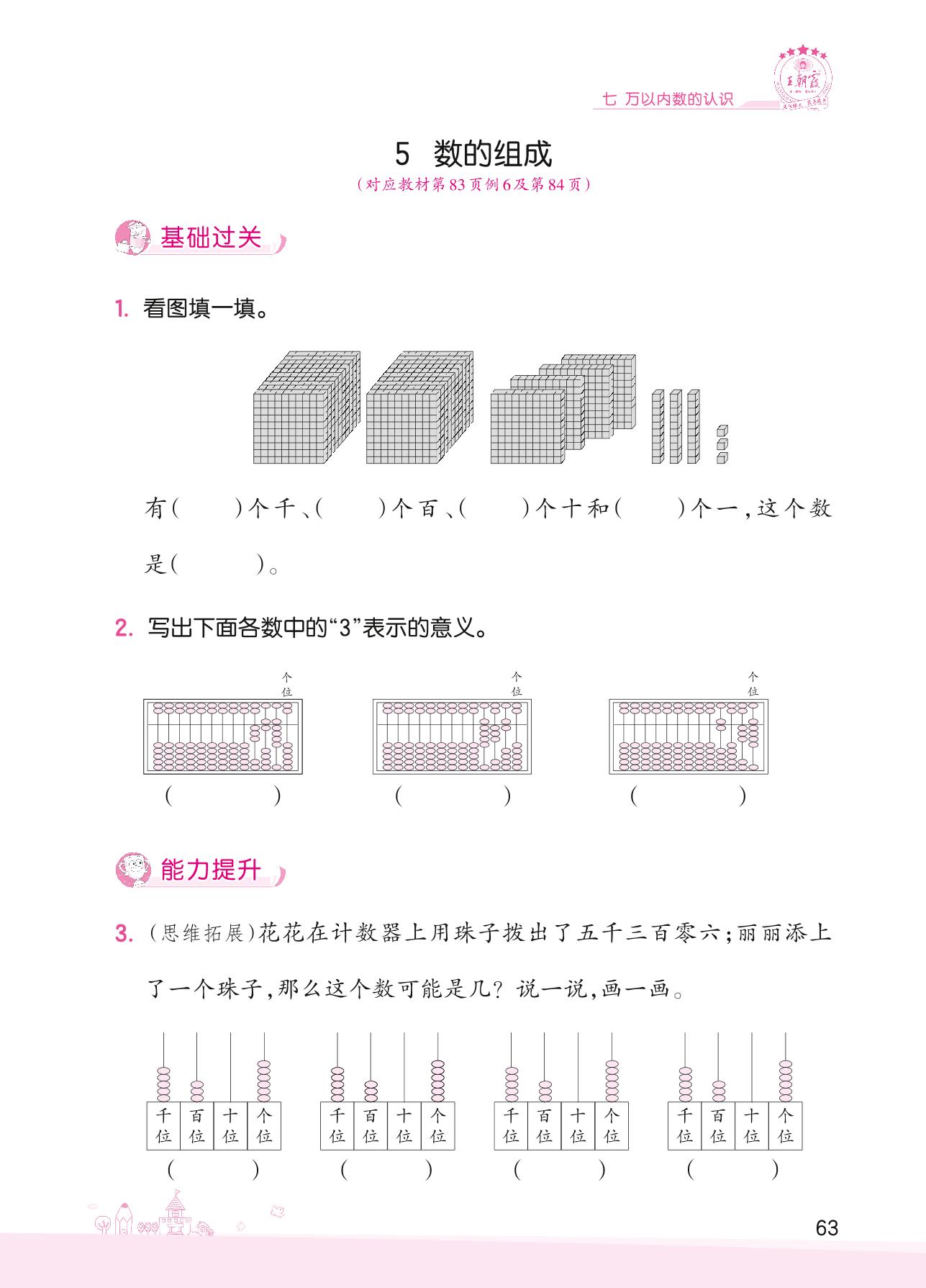 2022下册二年级数学人教版 七 万以内数的认识——5 数的组成