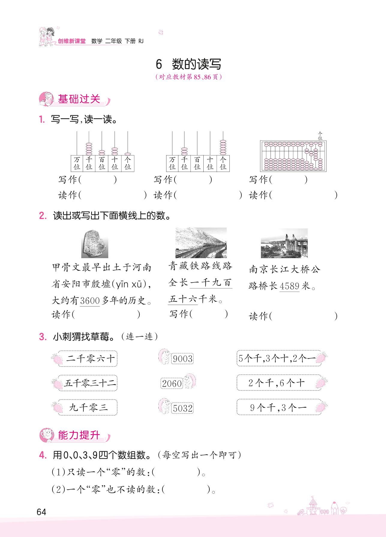2022下册二年级数学人教版 七 万以内数的认识——6 数的读写