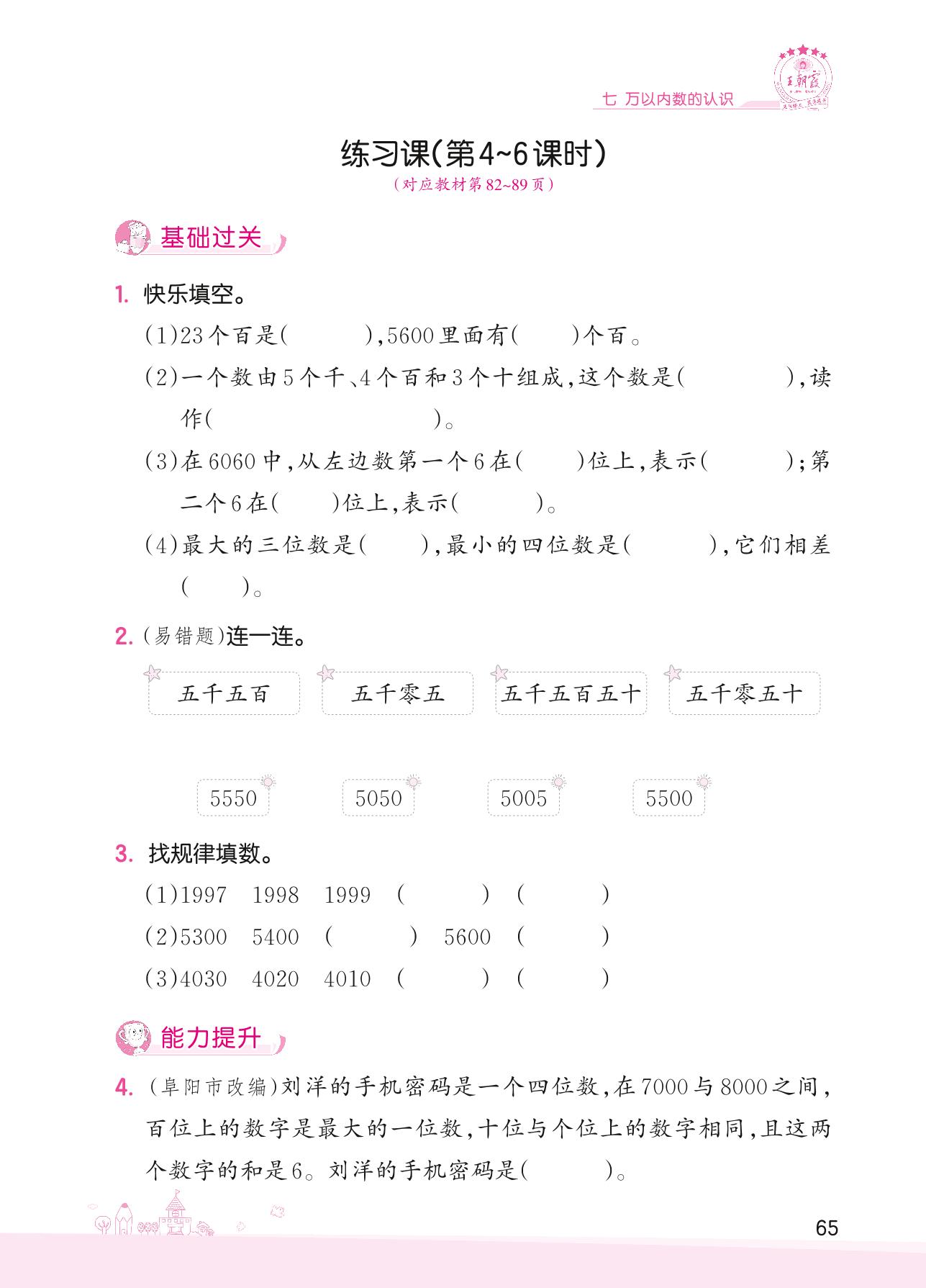 2022下册二年级数学人教版 七 万以内数的认识——练习课(第4~6课时)