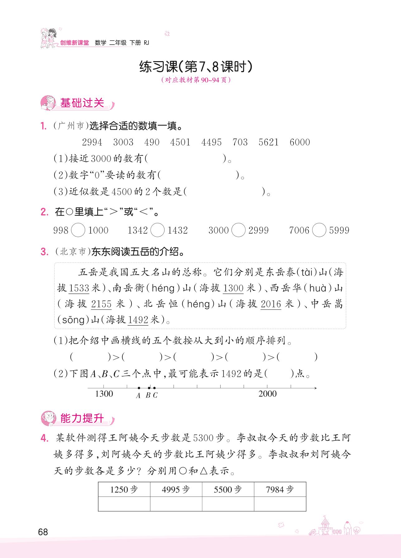 2022下册二年级数学人教版 七 万以内数的认识——练习课(第7、8课时)