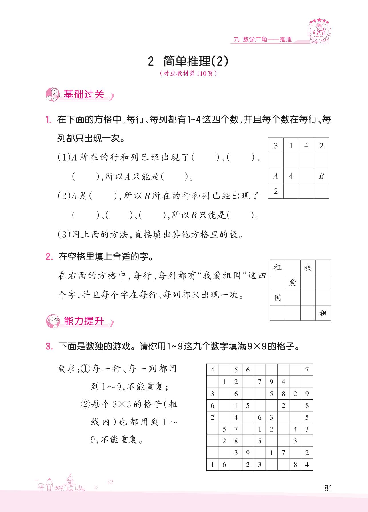 2022下册二年级数学人教版 九 数学广角——推理 2 简单推理(2)