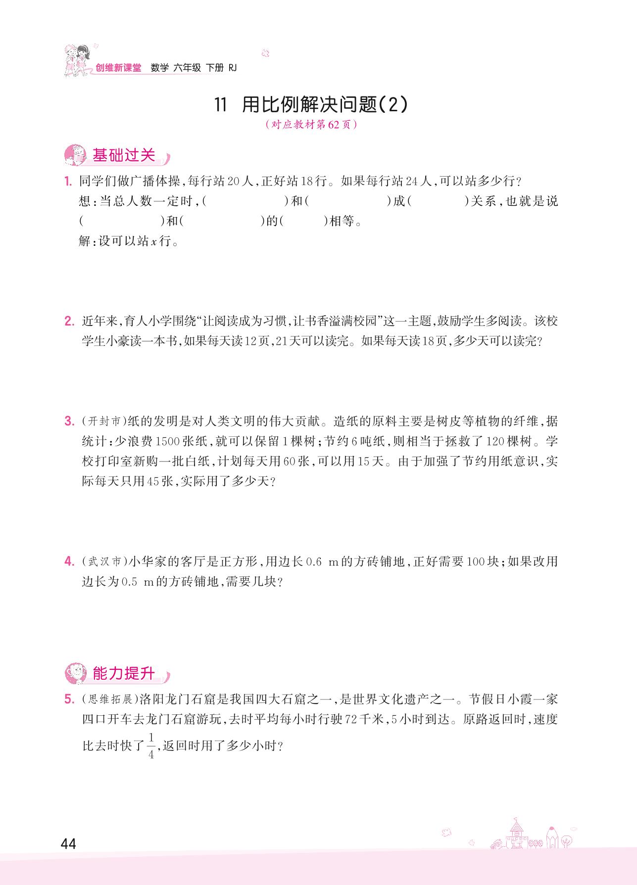 2022下册六年级数学人教版 四 比例——11 用比例解决问题(2)
