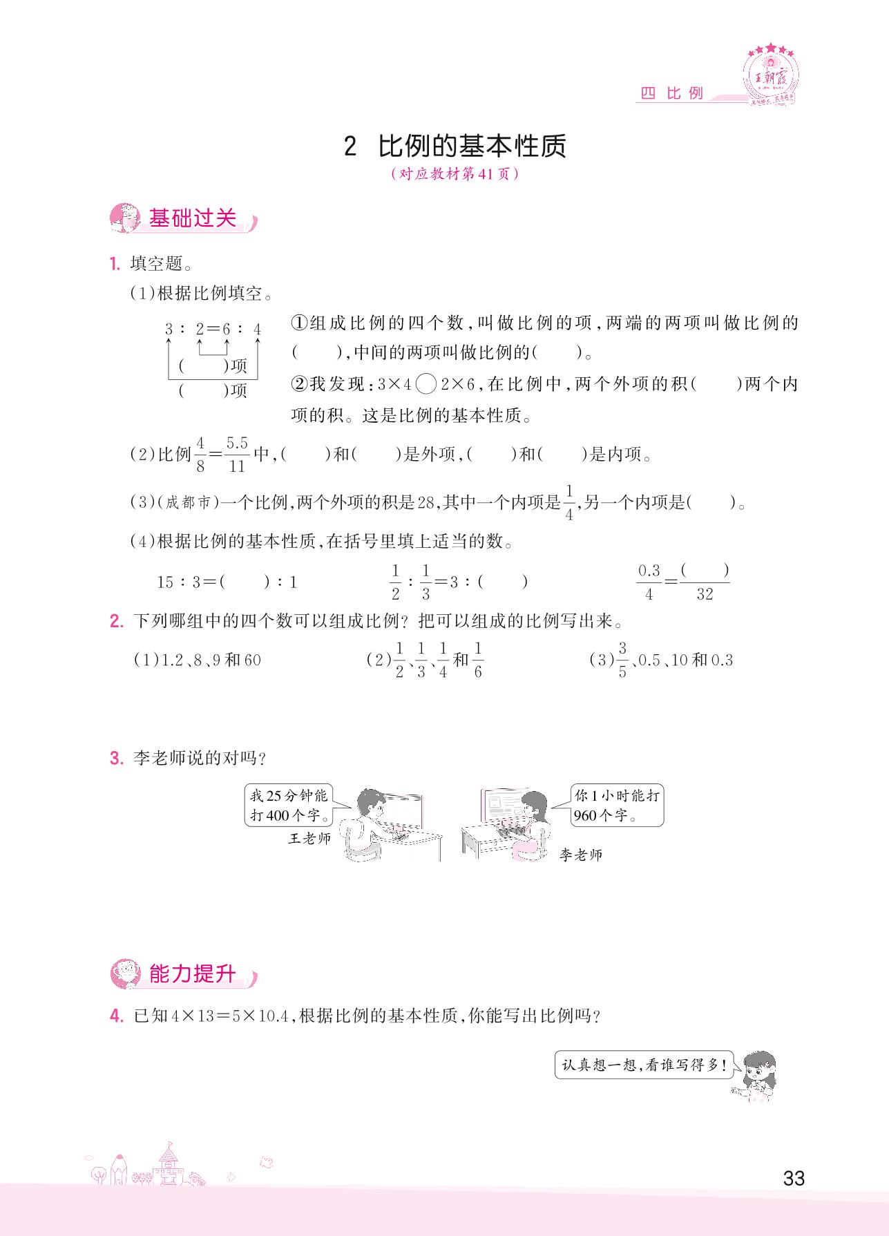 2022下册六年级数学人教版 四 比例——2 比例的基本性质