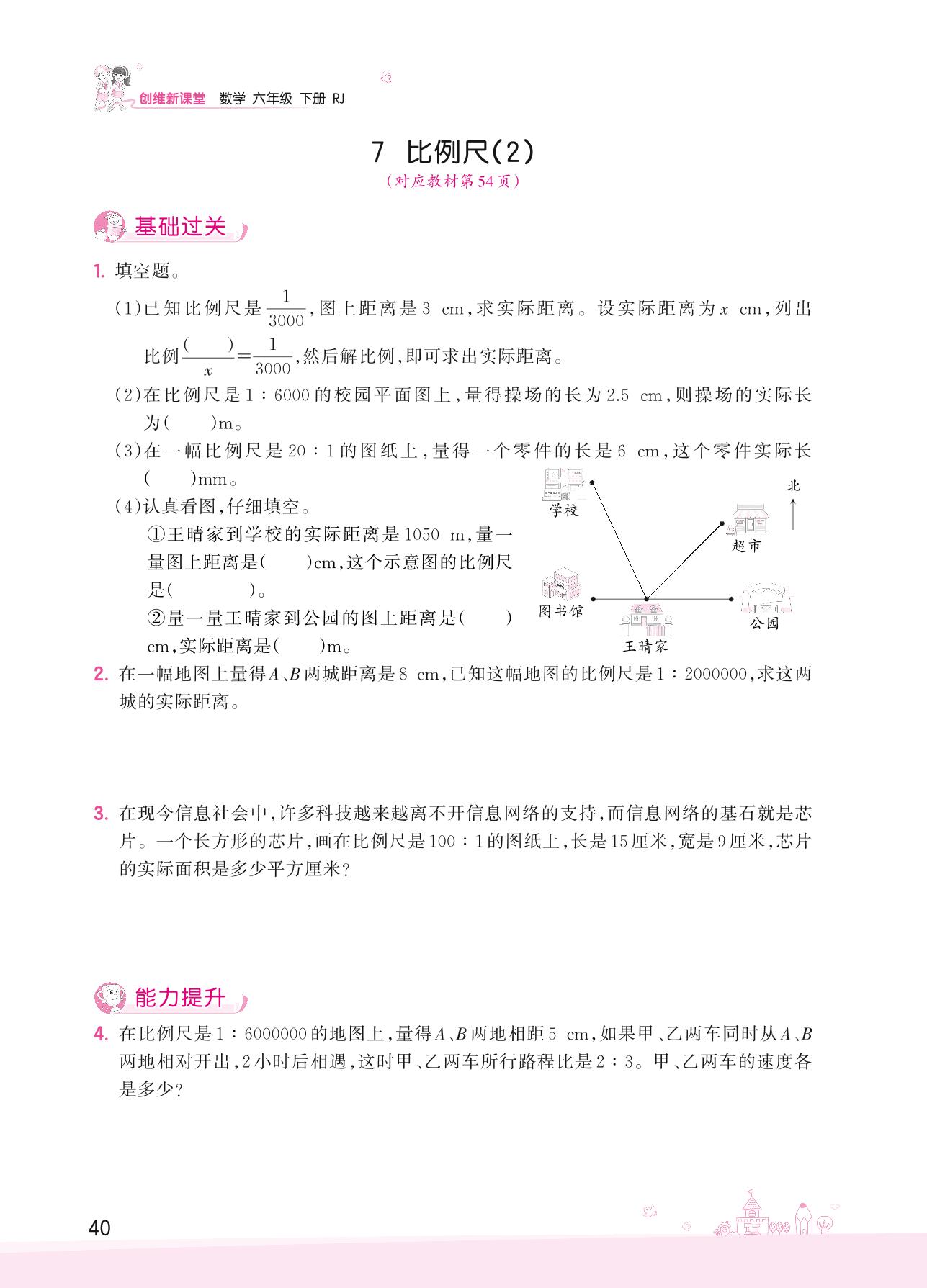 2022下册六年级数学人教版 四 比例——7 比例尺(2)