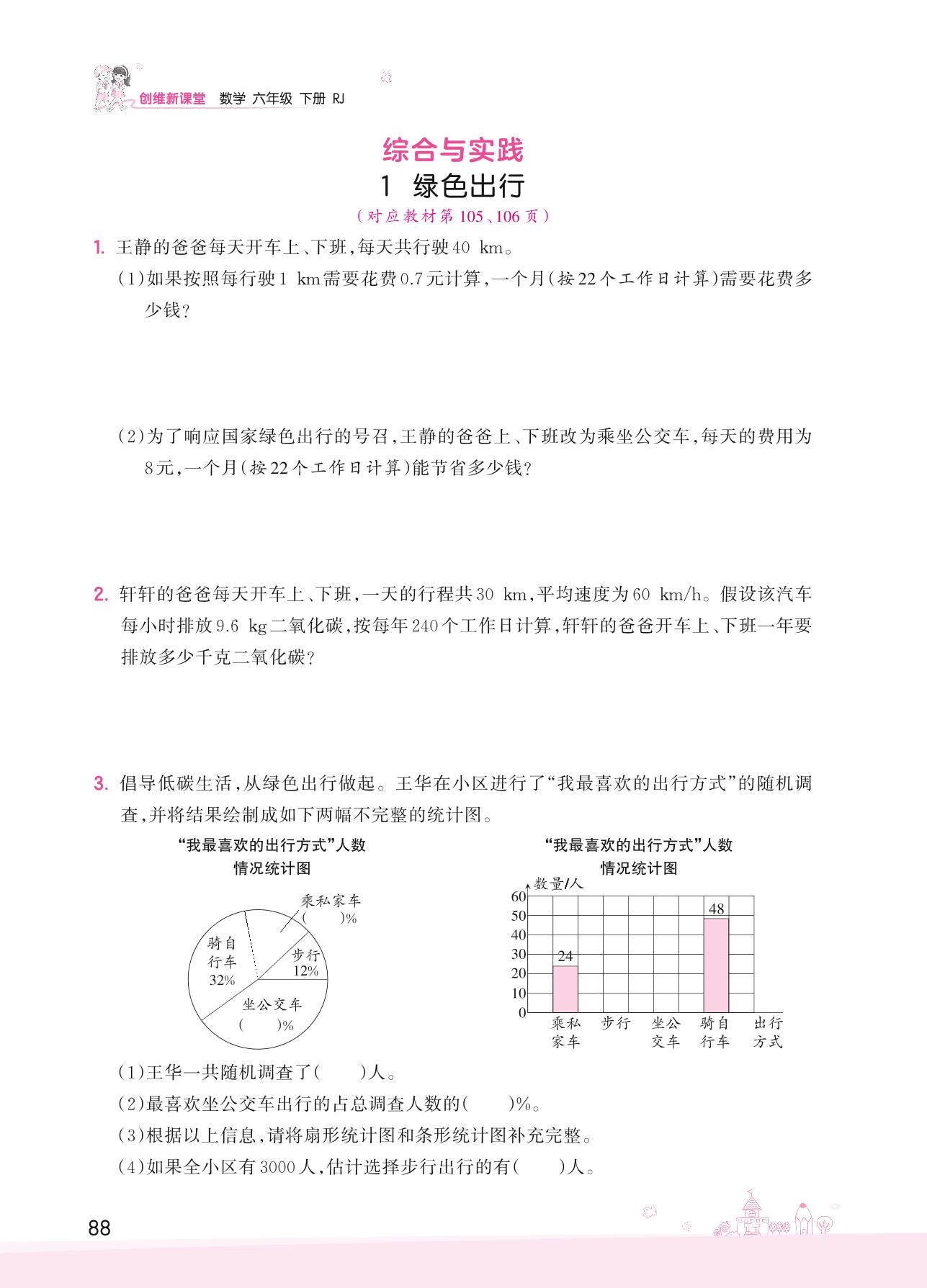 2022下册六年级数学人教版 六 整理和复习——1 绿色出行
