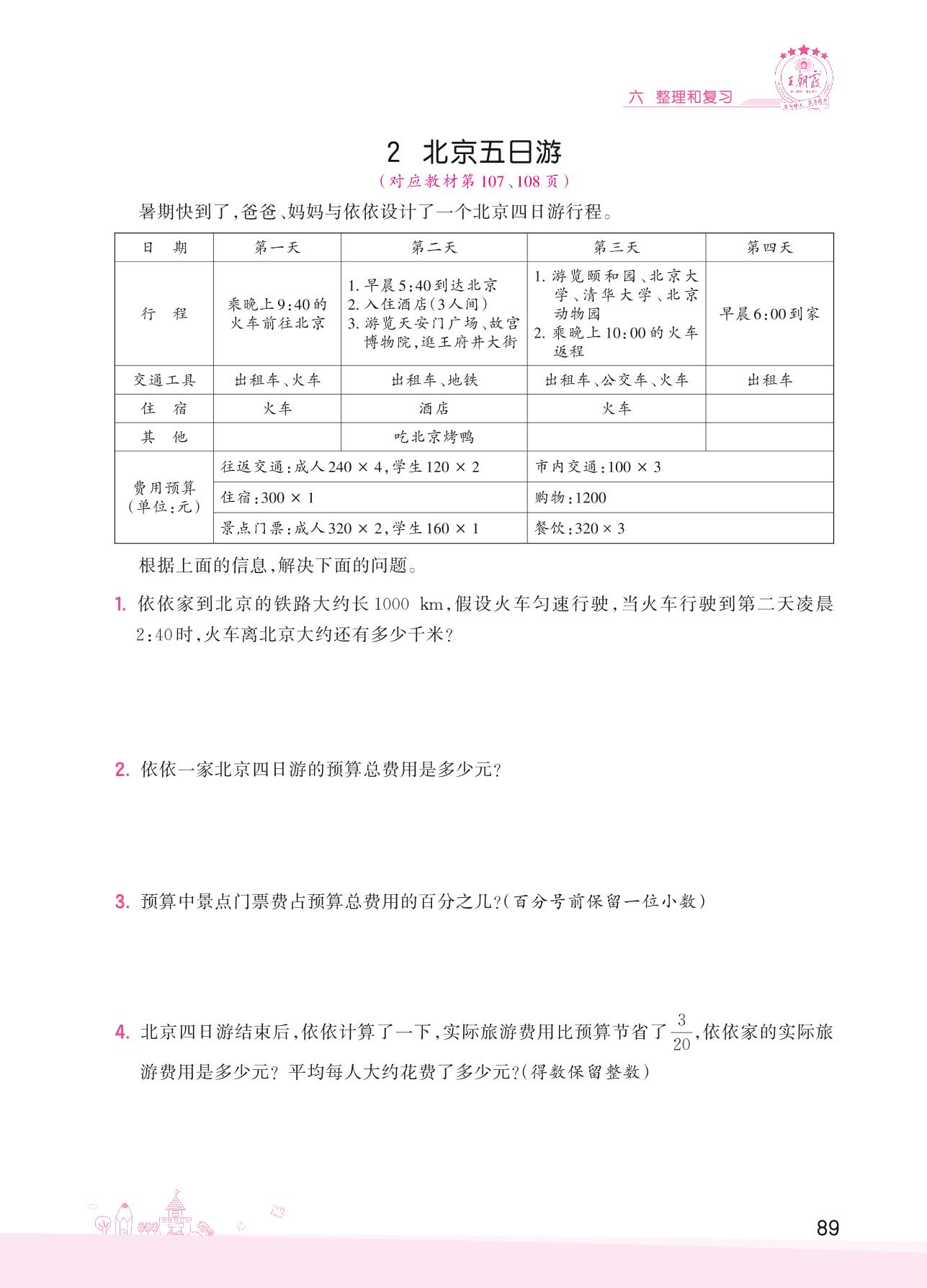 2022下册六年级数学人教版 六 整理和复习——2 北京五日游