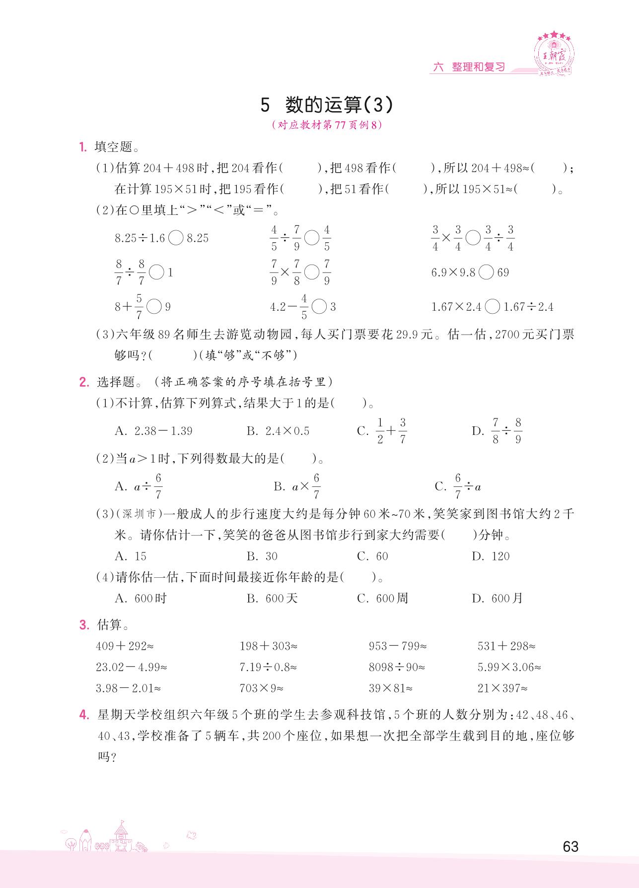 2022下册六年级数学人教版 六 整理和复习——5 数的运算(3)