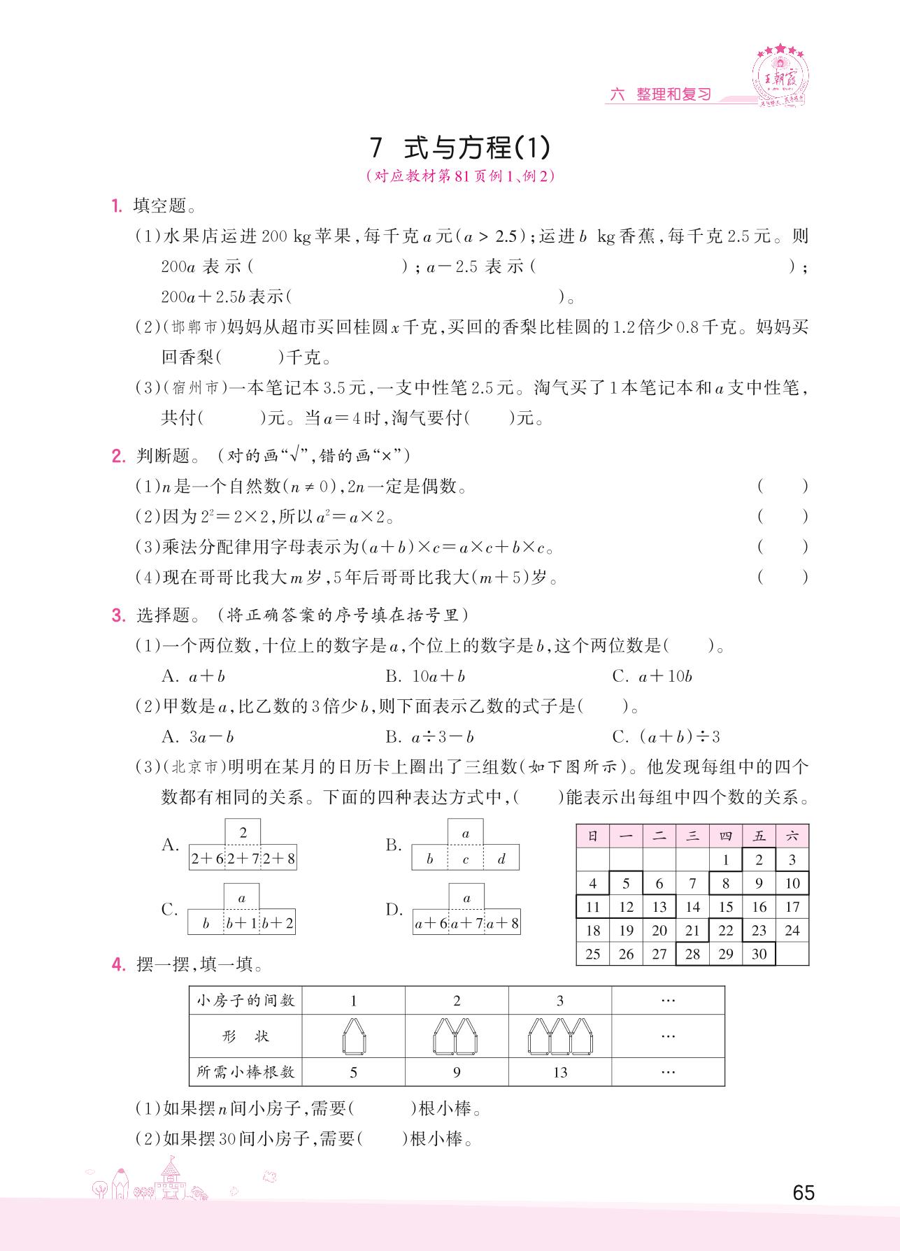 2022下册六年级数学人教版 六 整理和复习——7 式与方程(1)