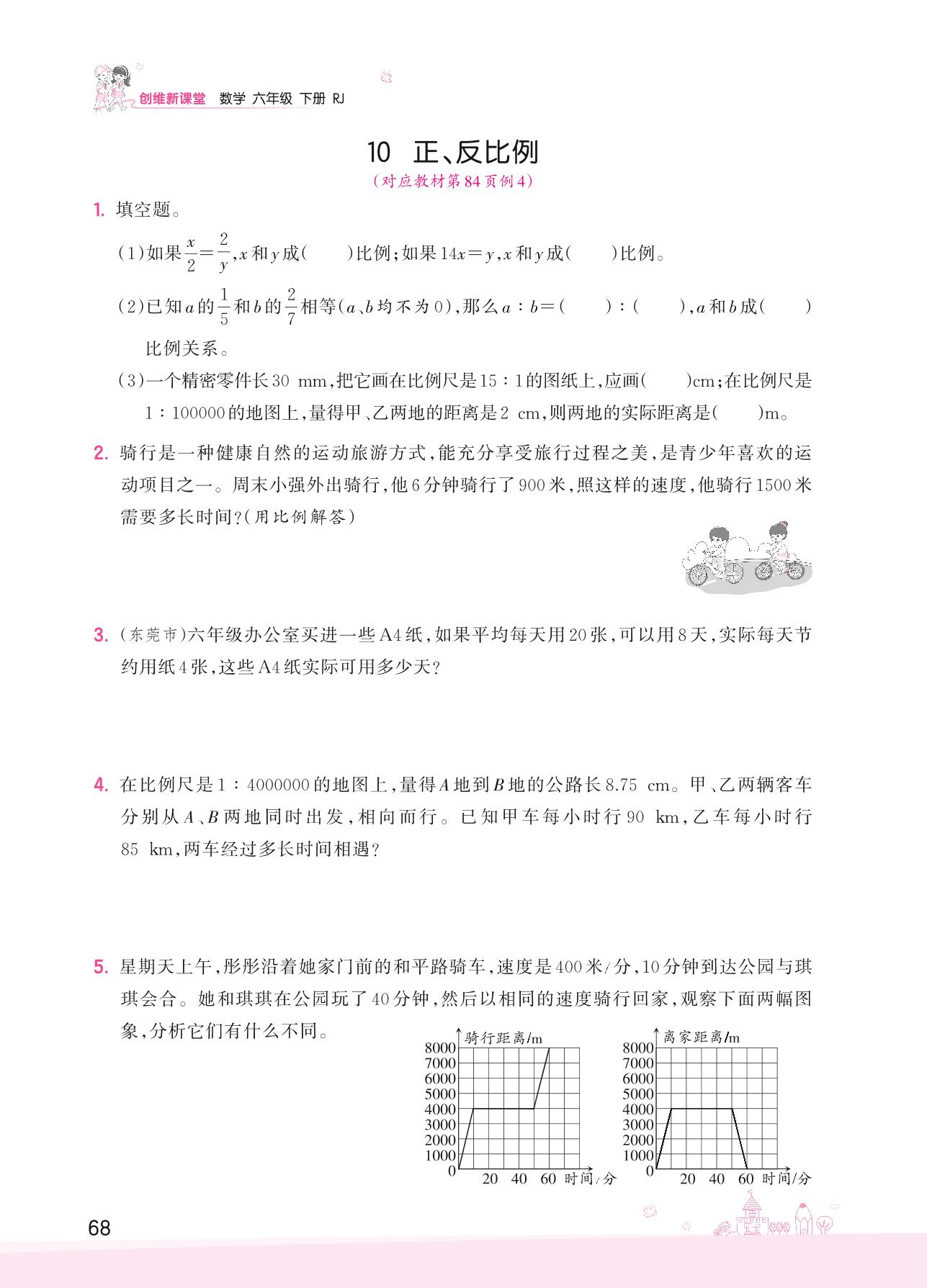 2022下册六年级数学人教版 六 整理和复习——10 正、反比例