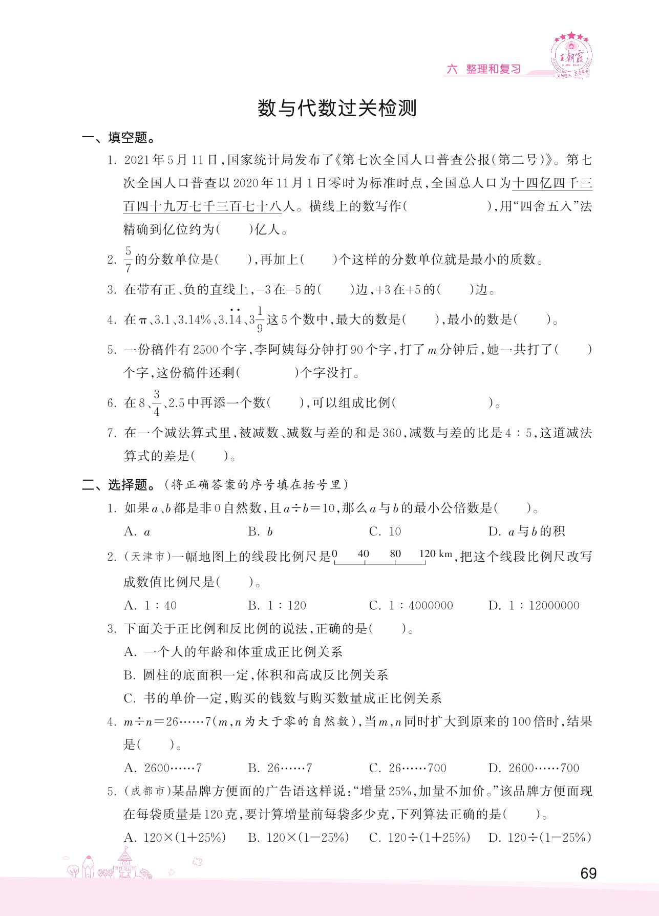 2022下册六年级数学人教版 六 整理和复习——数与代数过关检测