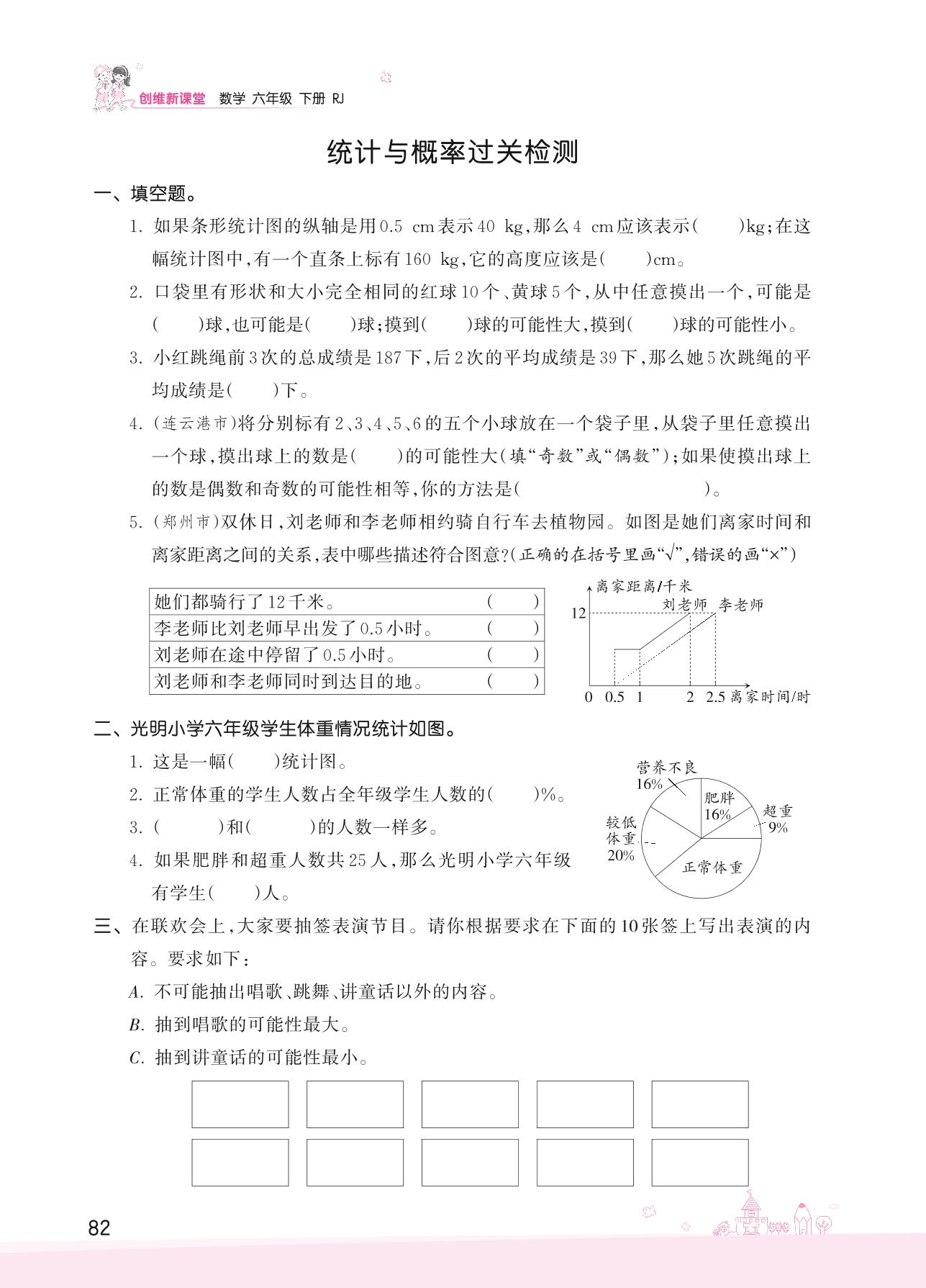 2022下册六年级数学人教版 六 整理和复习——统计与概率过关检测