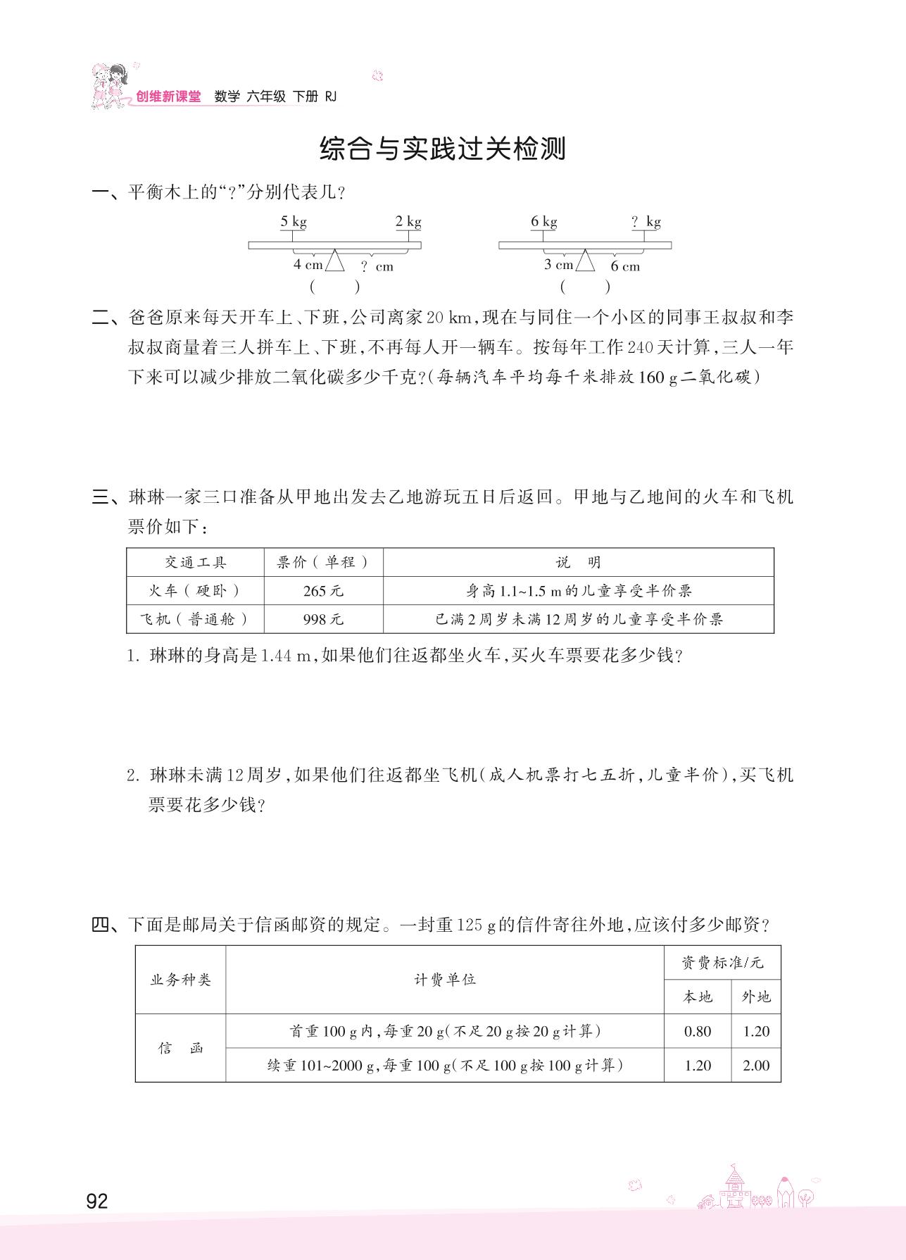 2022下册六年级数学人教版 六 整理和复习——综合与实践过关检测