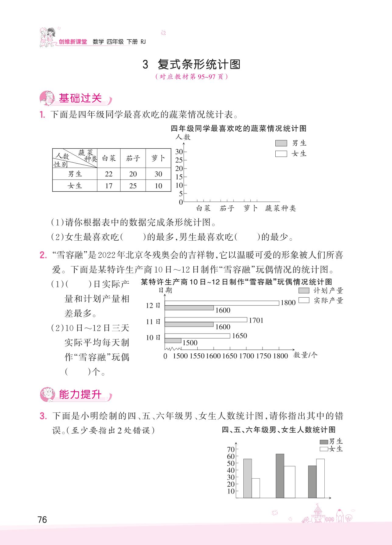 2022下册四年级数学人教版 八 平均数与条形统计图——3 复式条形统计图