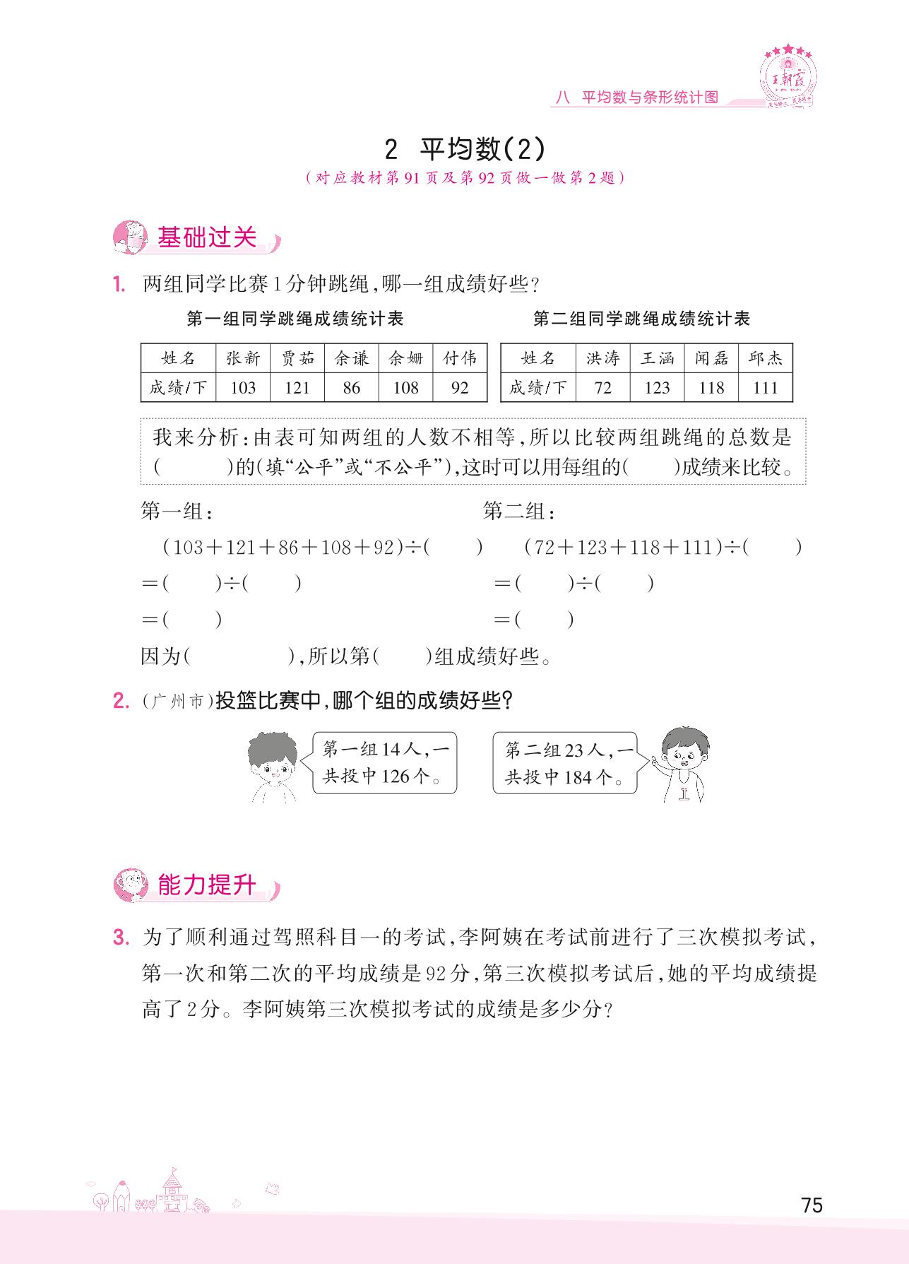 2022下册四年级数学人教版 八 平均数与条形统计图——2 平均数(2)