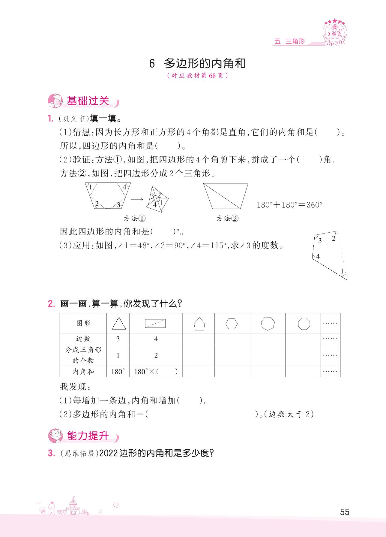 2022下册四年级数学人教版 五 三角形——6 多边形的内角和