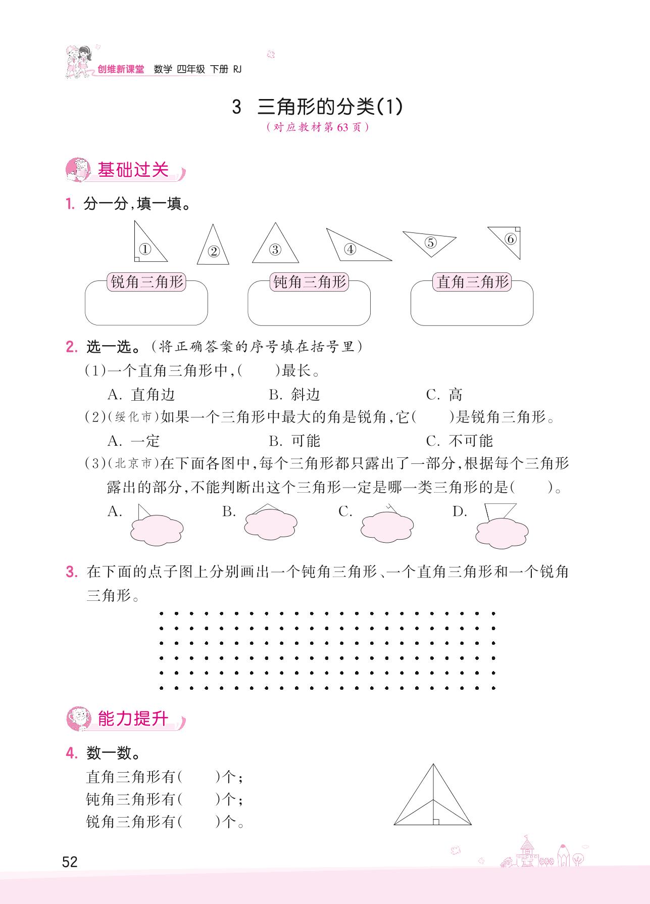 2022下册四年级数学人教版 五 三角形——3 三角形的分类(1)