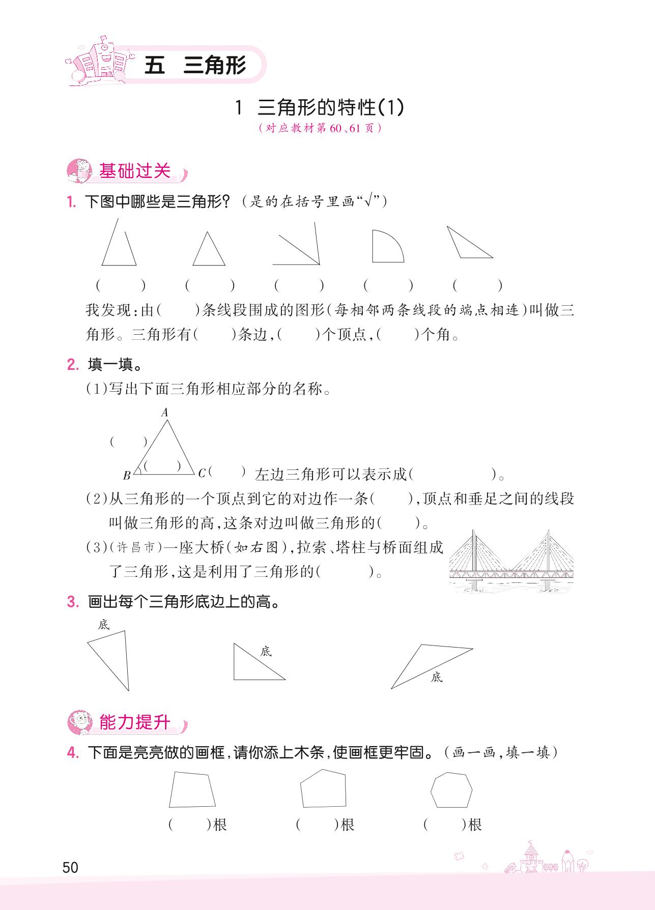 2022下册四年级数学人教版 五 三角形——1 三角形的特性(1)
