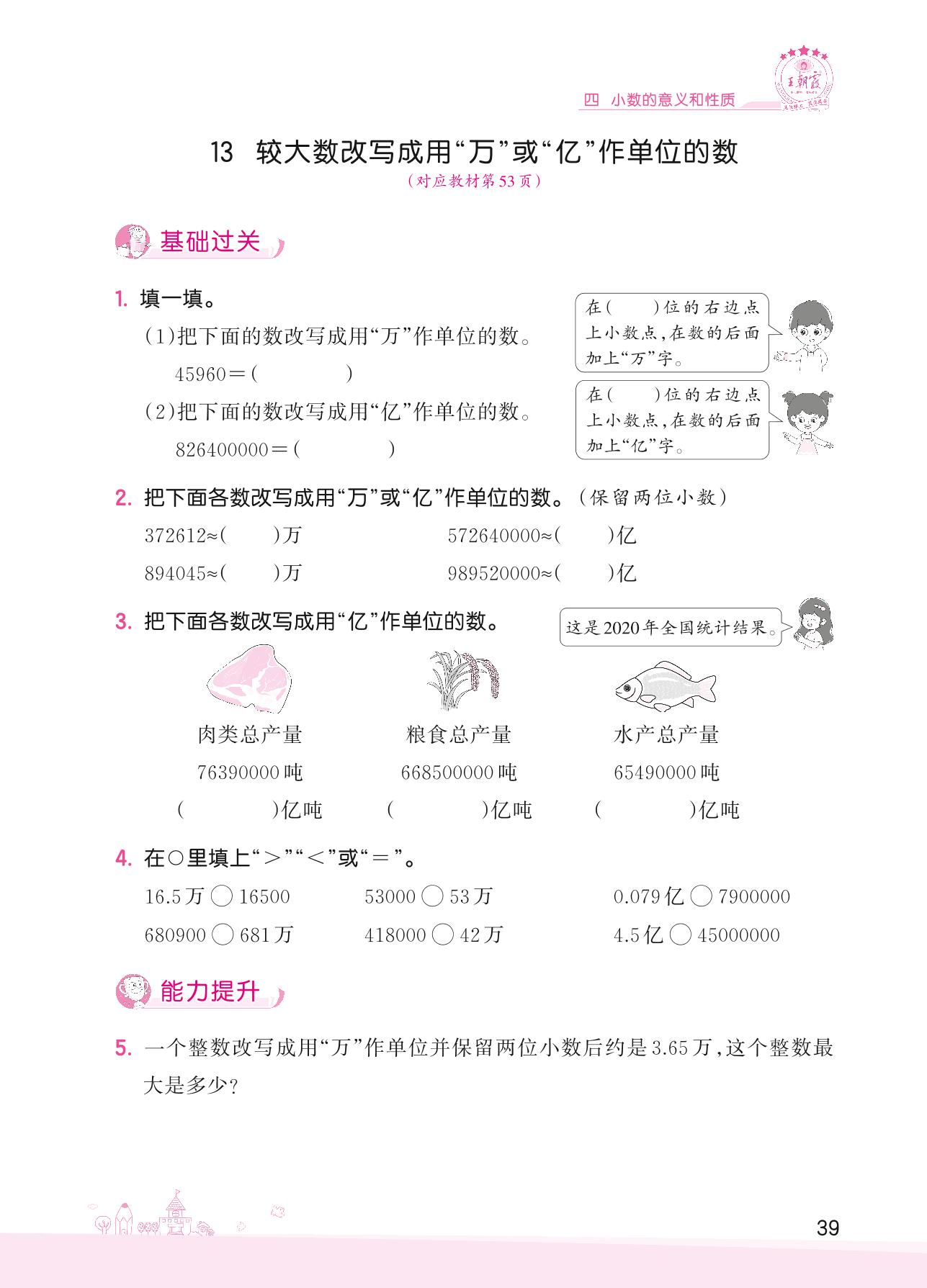 2022下册四年级数学人教版 四 小数的意义和性质——13 较大数改写成用“万”或“亿”作单位的数