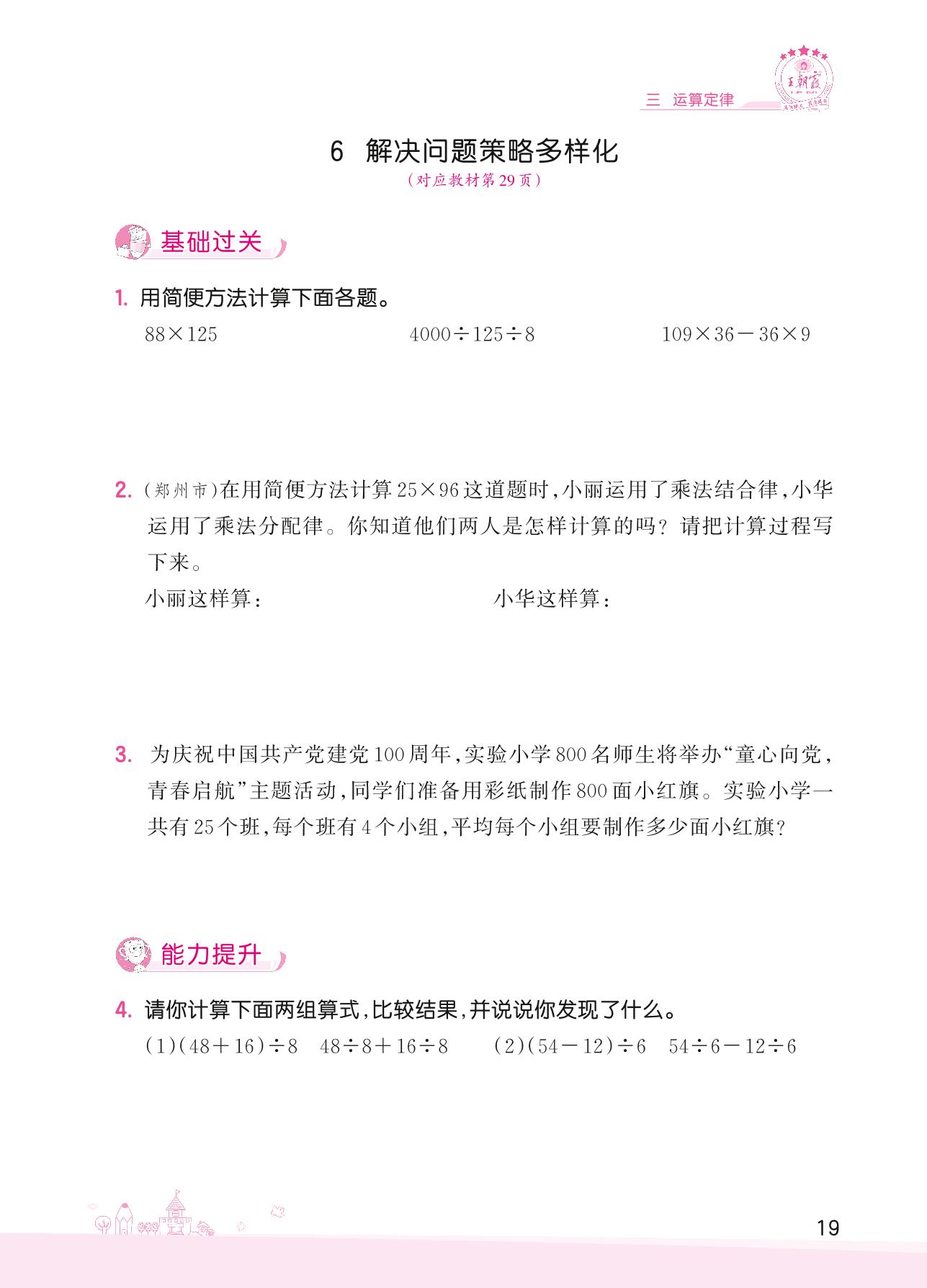 2022下册四年级数学人教版 三 运算定律——6 解决问题策略多样化