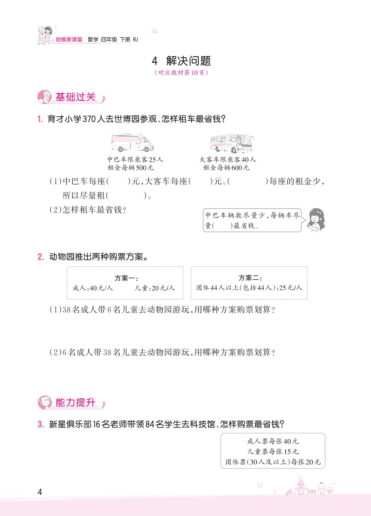 2022下册四年级数学人教版 一 四则运算——4 解决问题