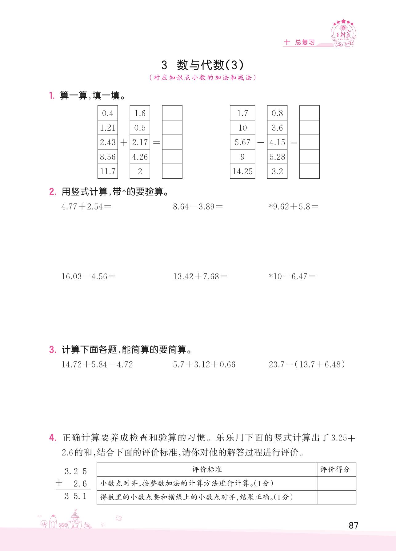 2022下册四年级数学人教版 十 总复习——3 数与代数(3)