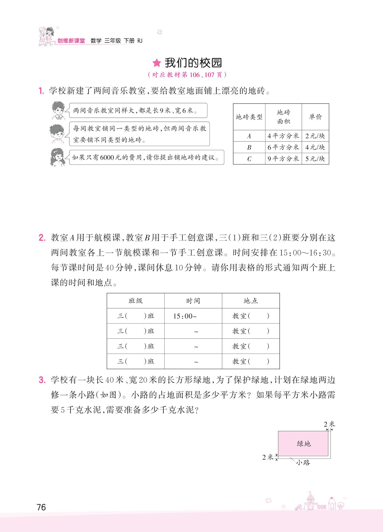 2022下册三年级数学人教版 ★我们的校园