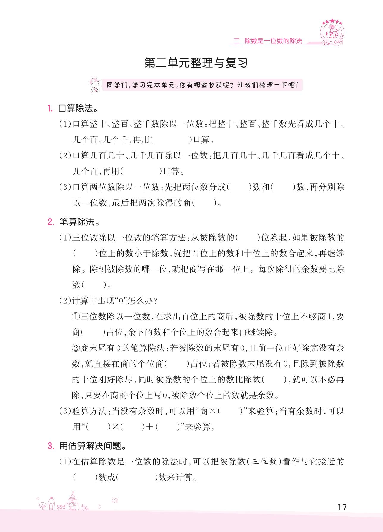 2022下册三年级数学人教版 第二单元整理与复习