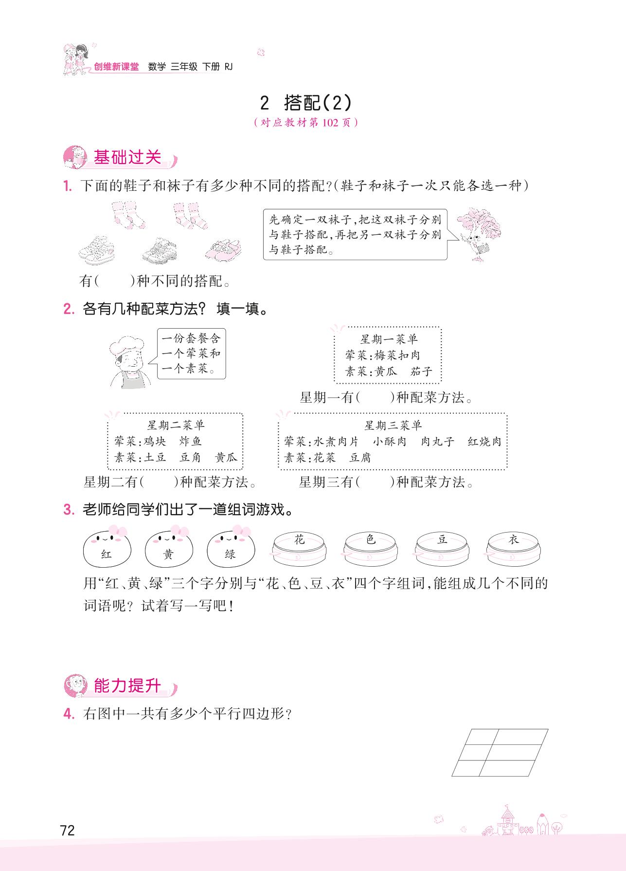 2022下册三年级数学人教版 八 数学广角——搭配(二) 2 搭配(2)