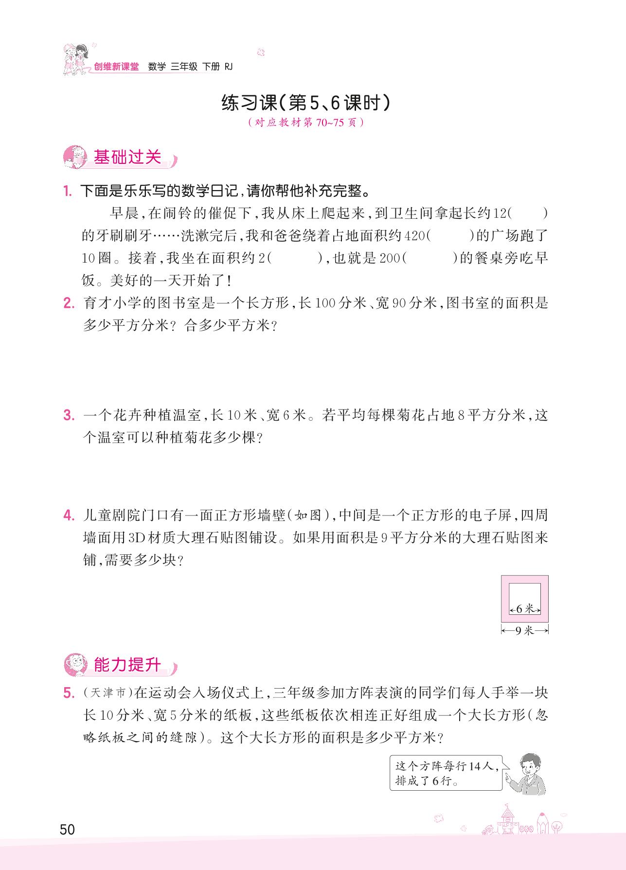 2022下册三年级数学人教版 五 面积——练习课(第5、6课时)