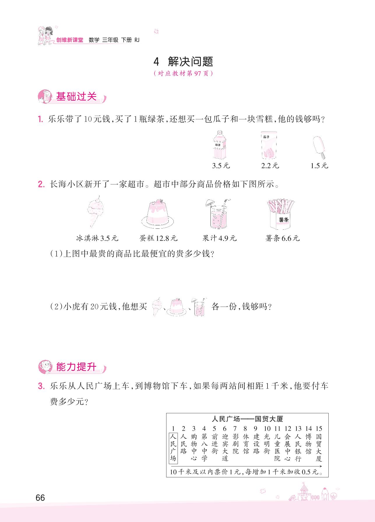 2022下册三年级数学人教版 七 小数的初步认识——4 解决问题