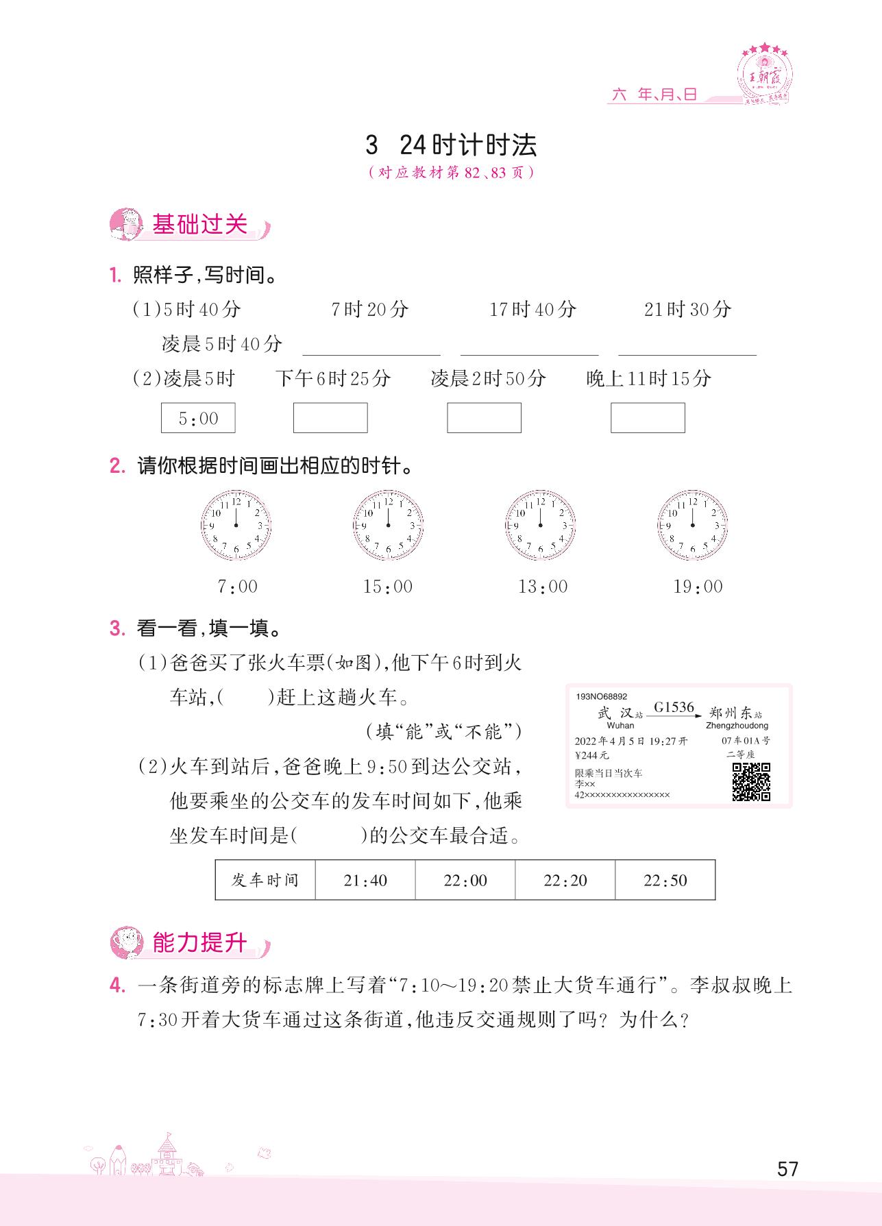 2022下册三年级数学人教版 六 年、月、日——3 24时计时法