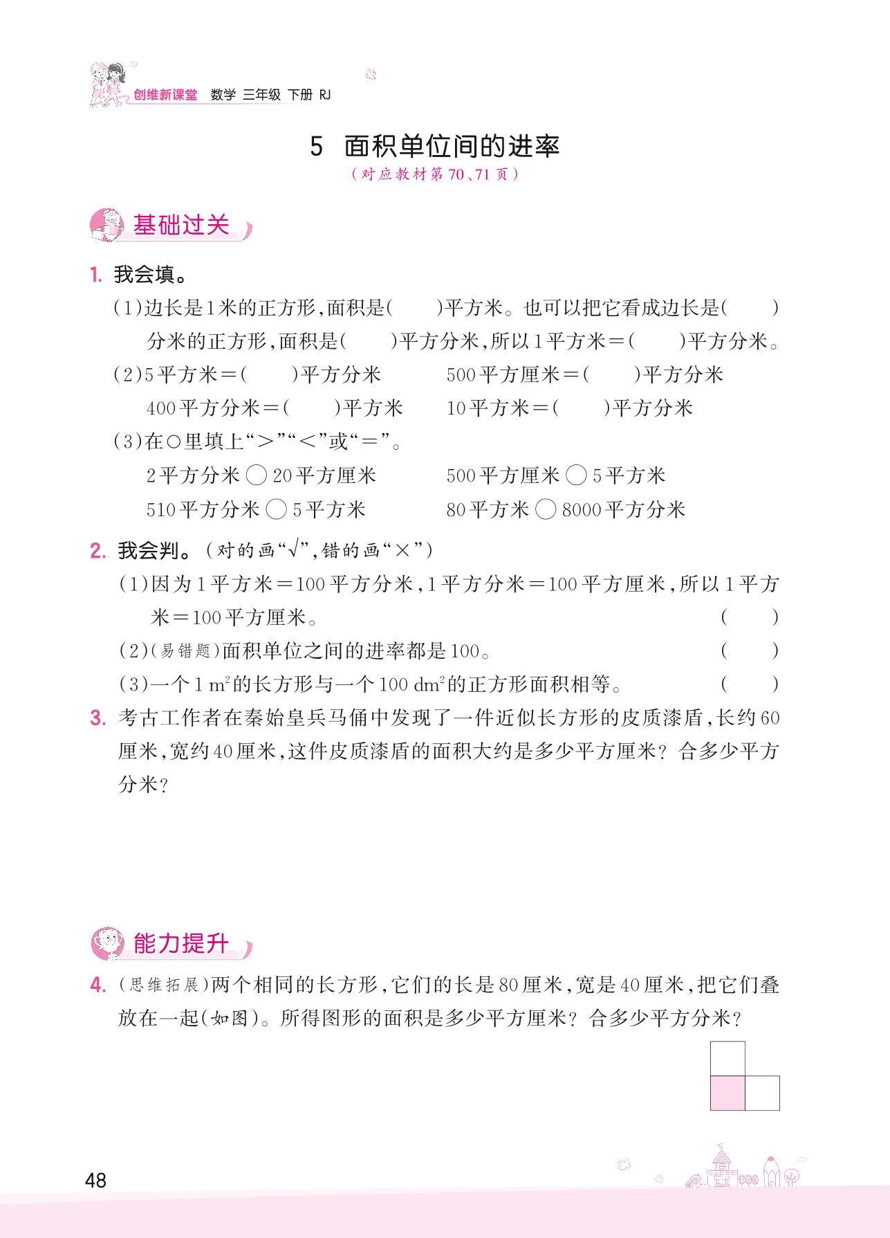 2022下册三年级数学人教版 五 面积——5 面积单位间的进率