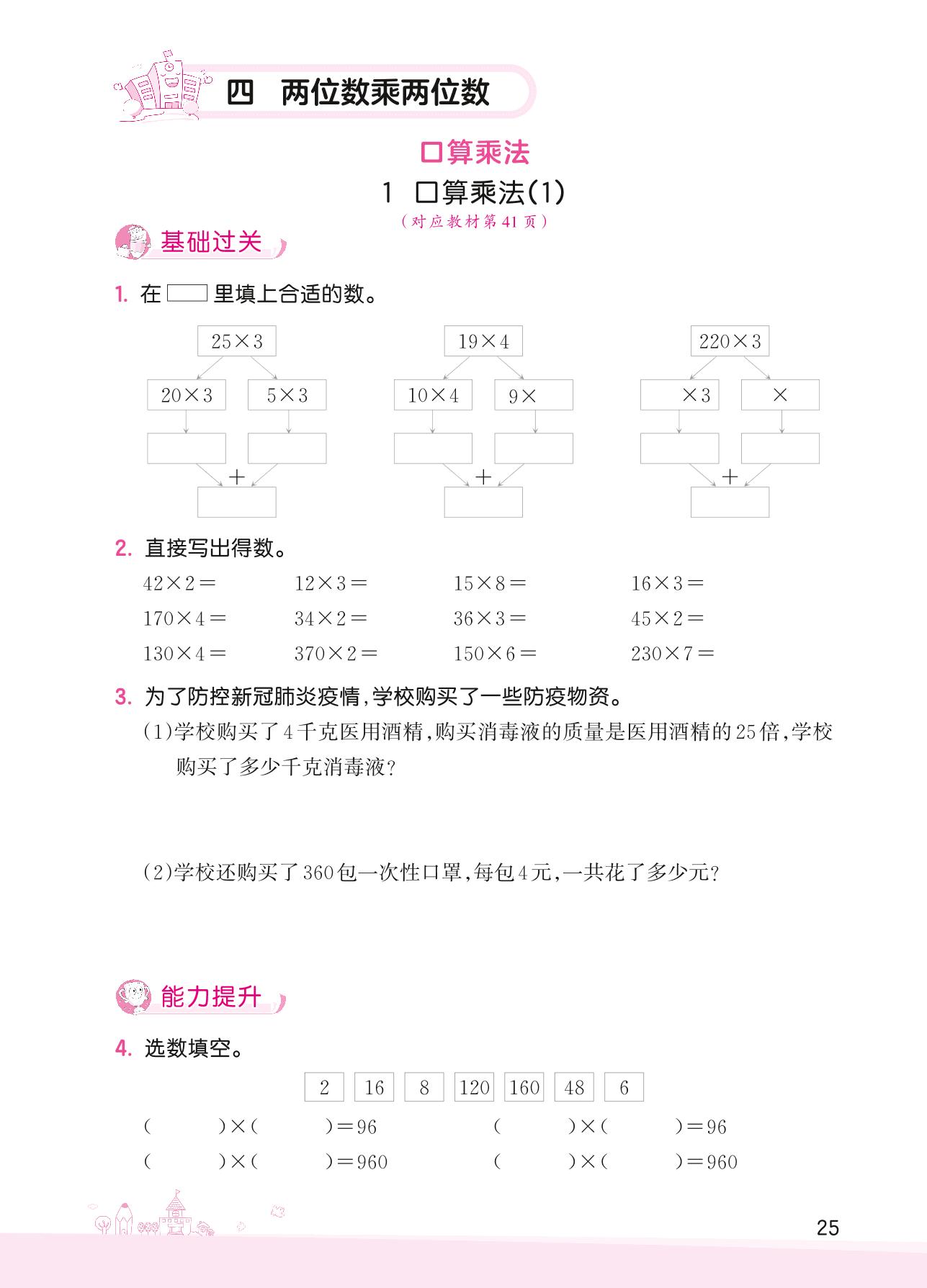 2022下册三年级数学人教版 四 两位数乘两位数——1 口算乘法(1)