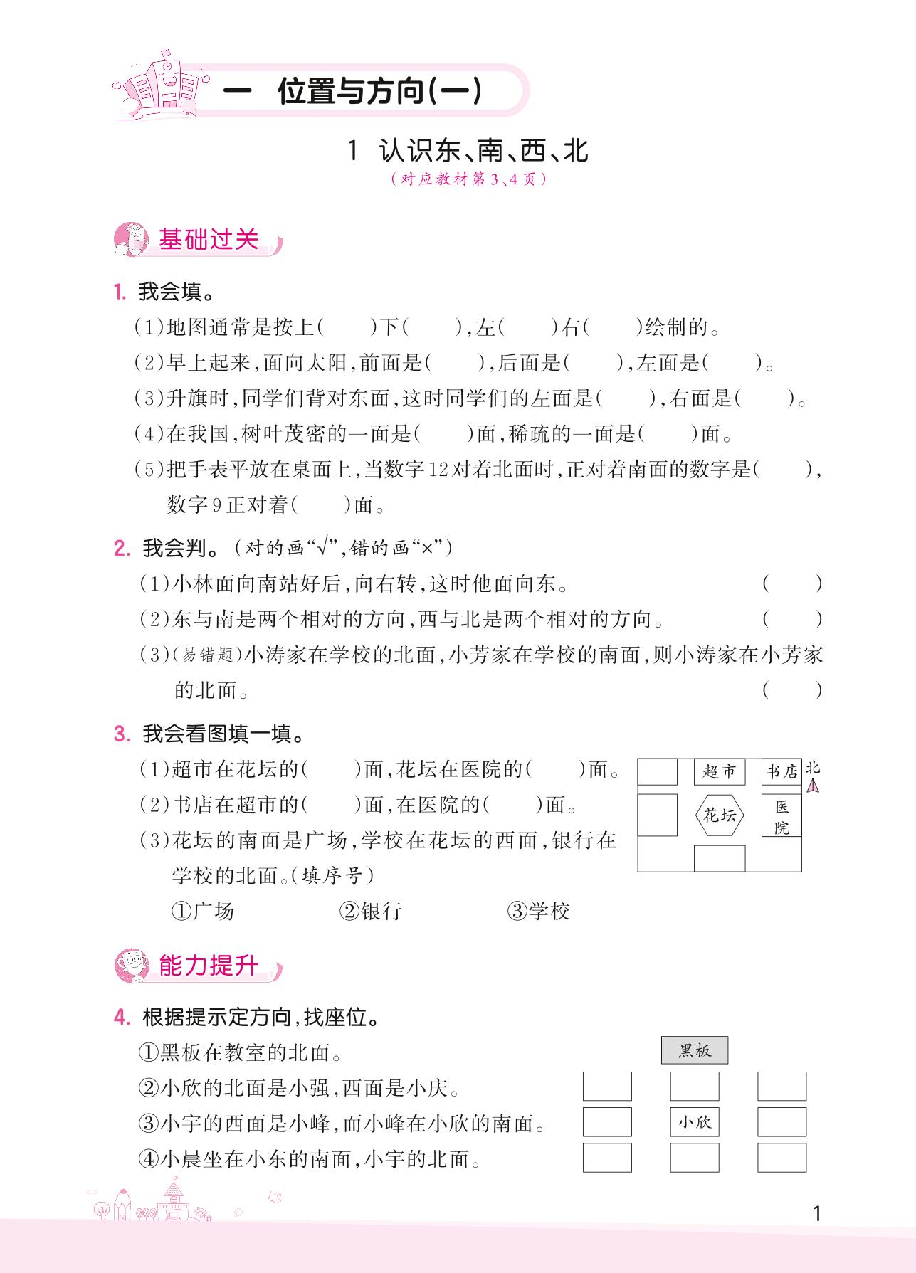 2022下册三年级数学人教版 一 位置与方向(一)——1 认识东、南、西、北