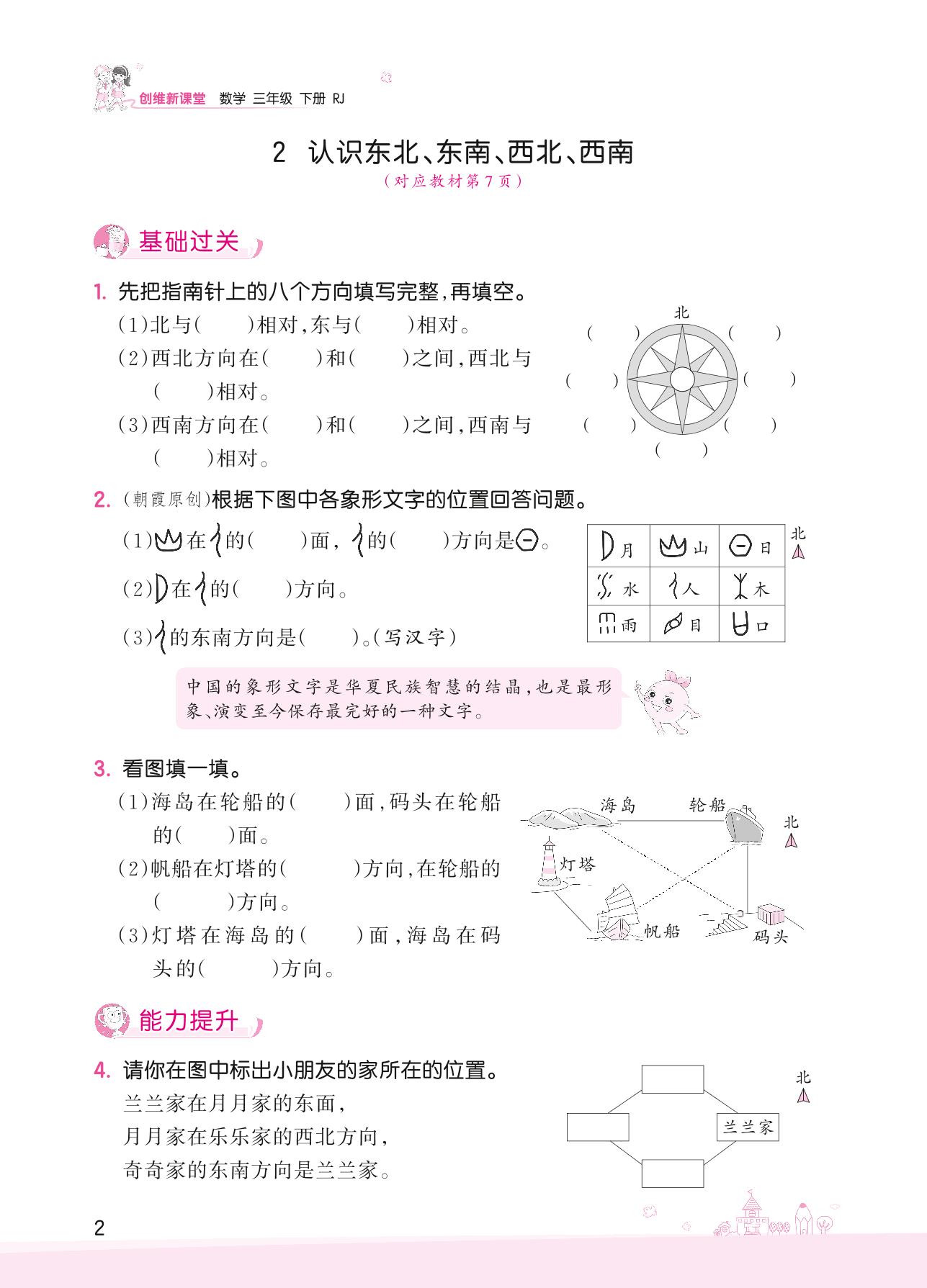 2022下册三年级数学人教版 一 位置与方向(一)——2 认识东北、东南、西北、西南