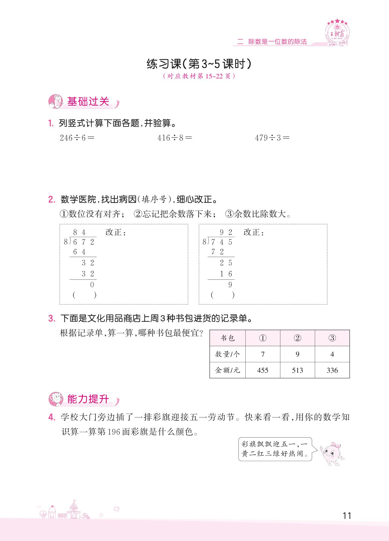 2022下册三年级数学人教版 二 除数是一位数的除法——练习课(第3~5课时)