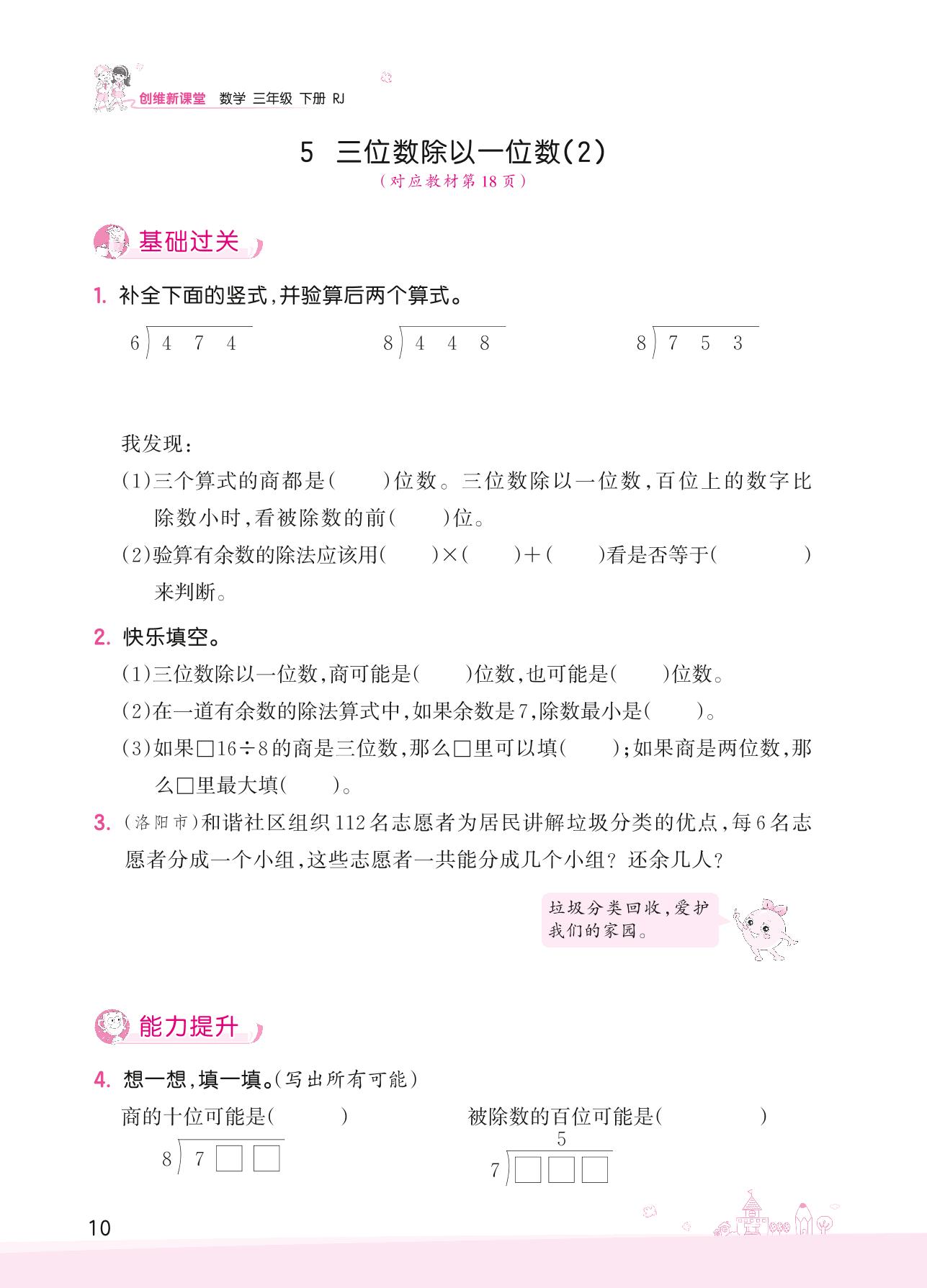 2022下册三年级数学人教版 二 除数是一位数的除法——5 三位数除以一位数(2)