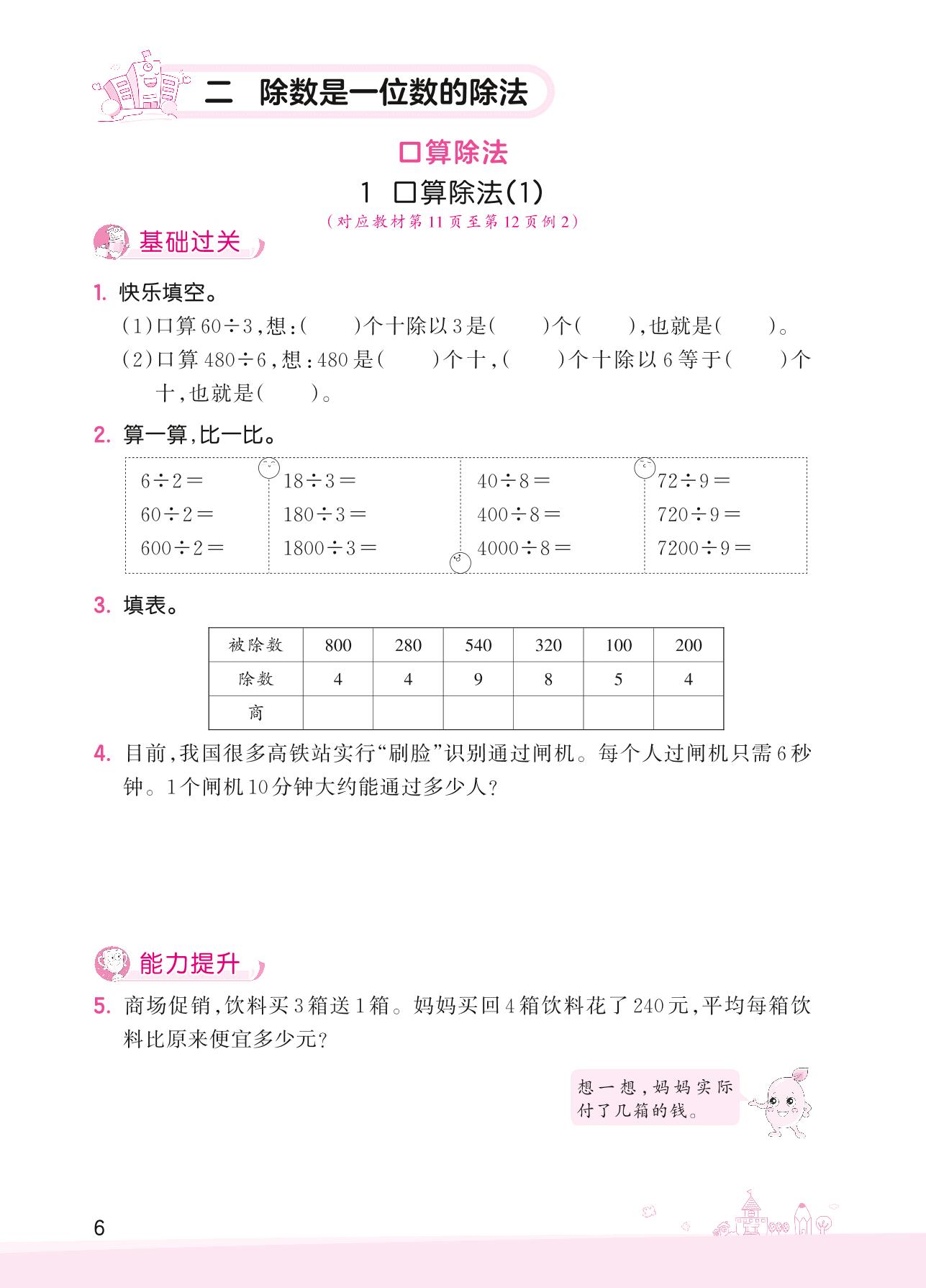 2022下册三年级数学人教版 二 除数是一位数的除法——1 口算除法(1)