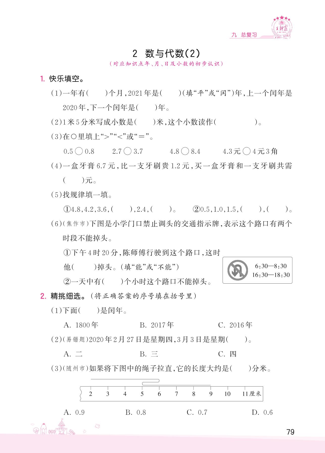 2022下册三年级数学人教版 九 总复习——2 数与代数(2)