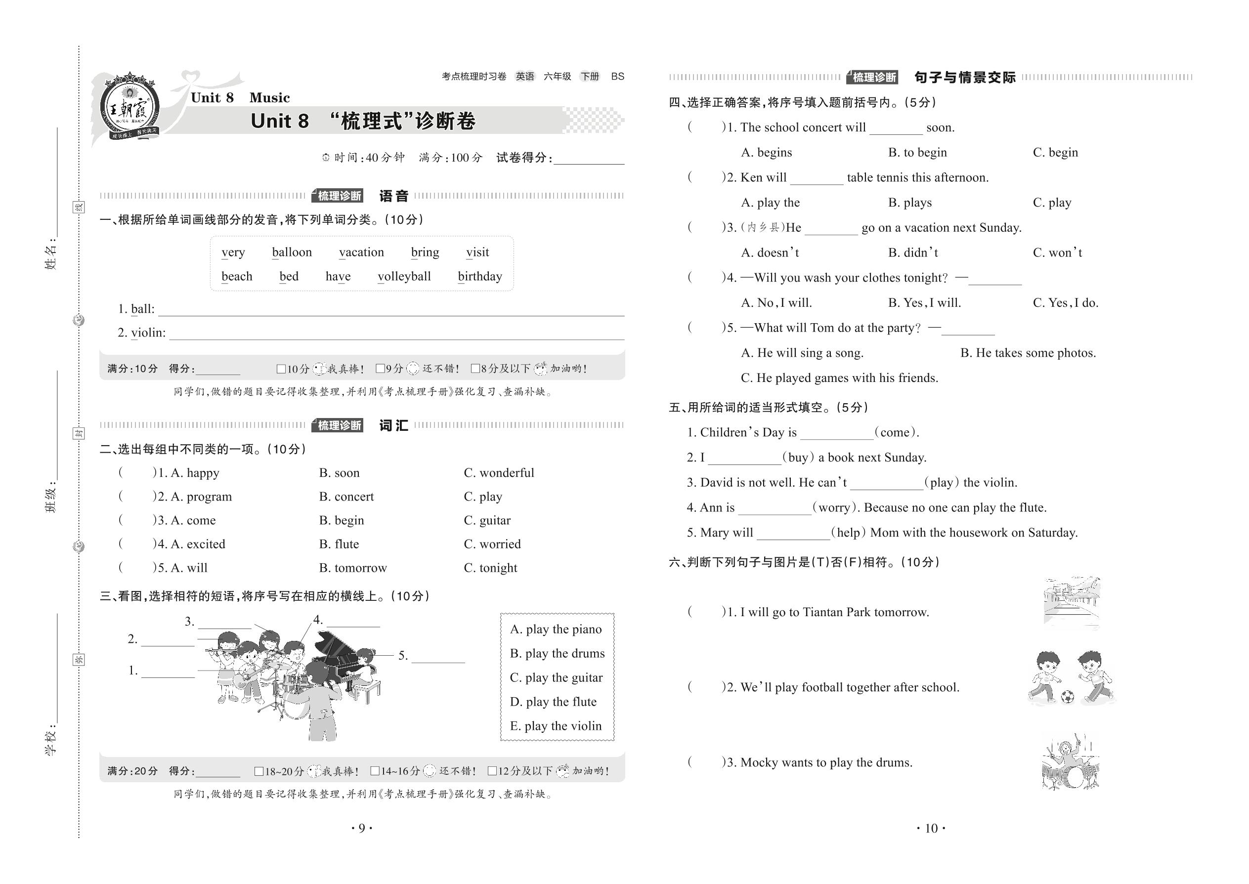 2022下册六年级英语北师版 Unit 8 “梳理式”诊断卷