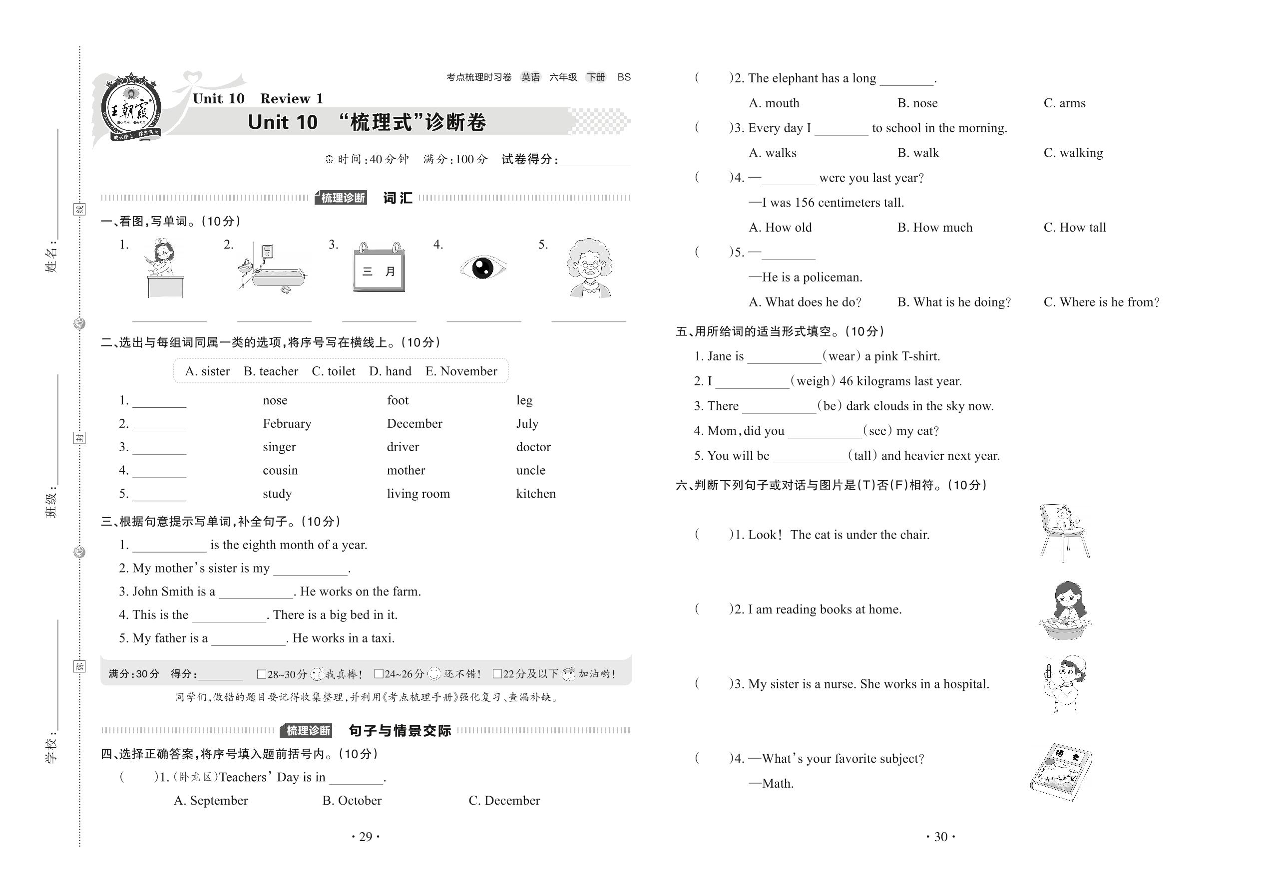 2022下册六年级英语北师版 Unit 10 “梳理式”诊断卷