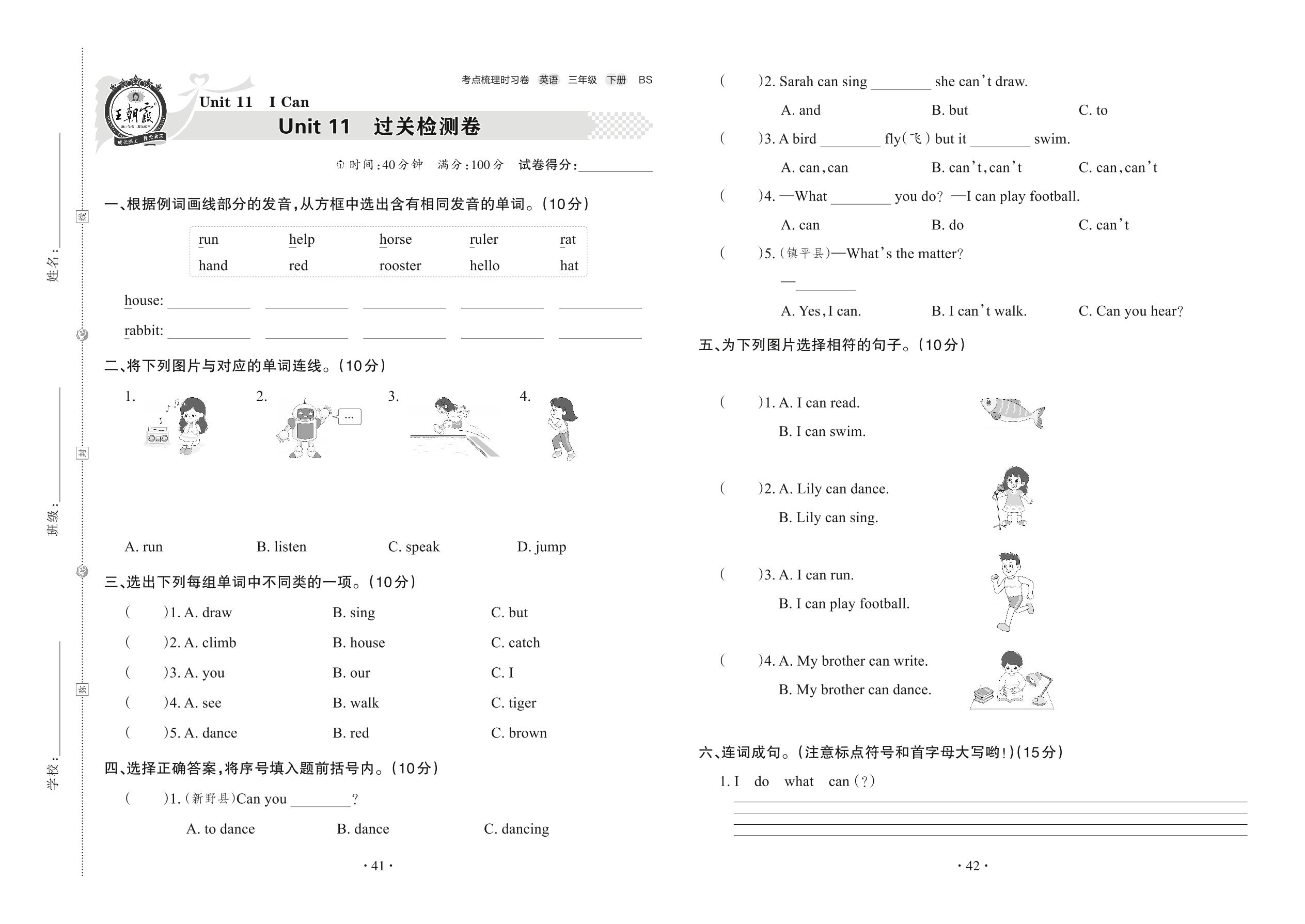 三年级英语北师版下册单元卷