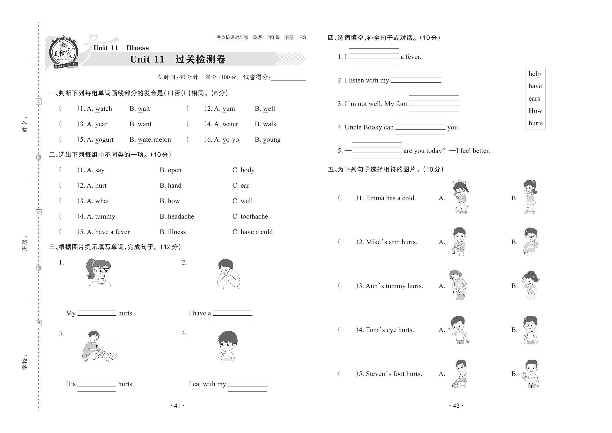 2022下册四年级英语北师版 Unit 11 过关检测卷