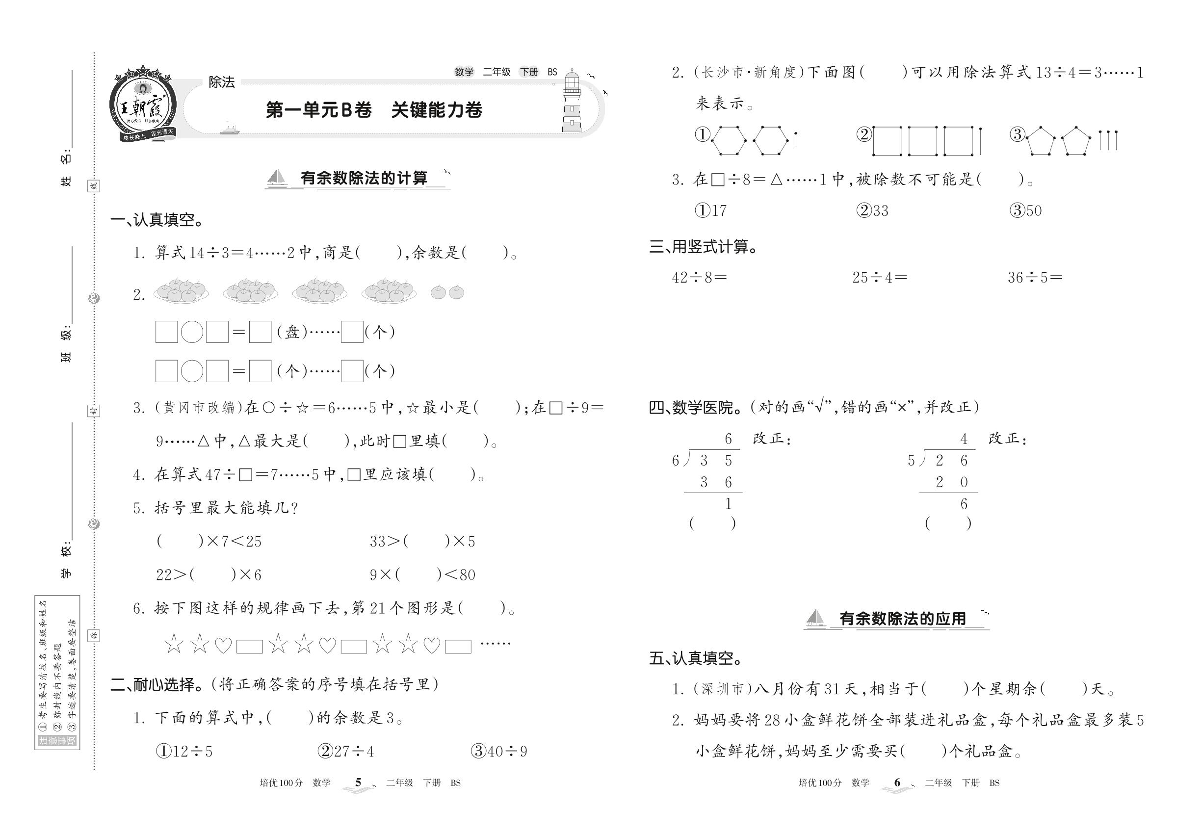 2022下册二年级数学北师版 第一单元B卷 关键能力卷