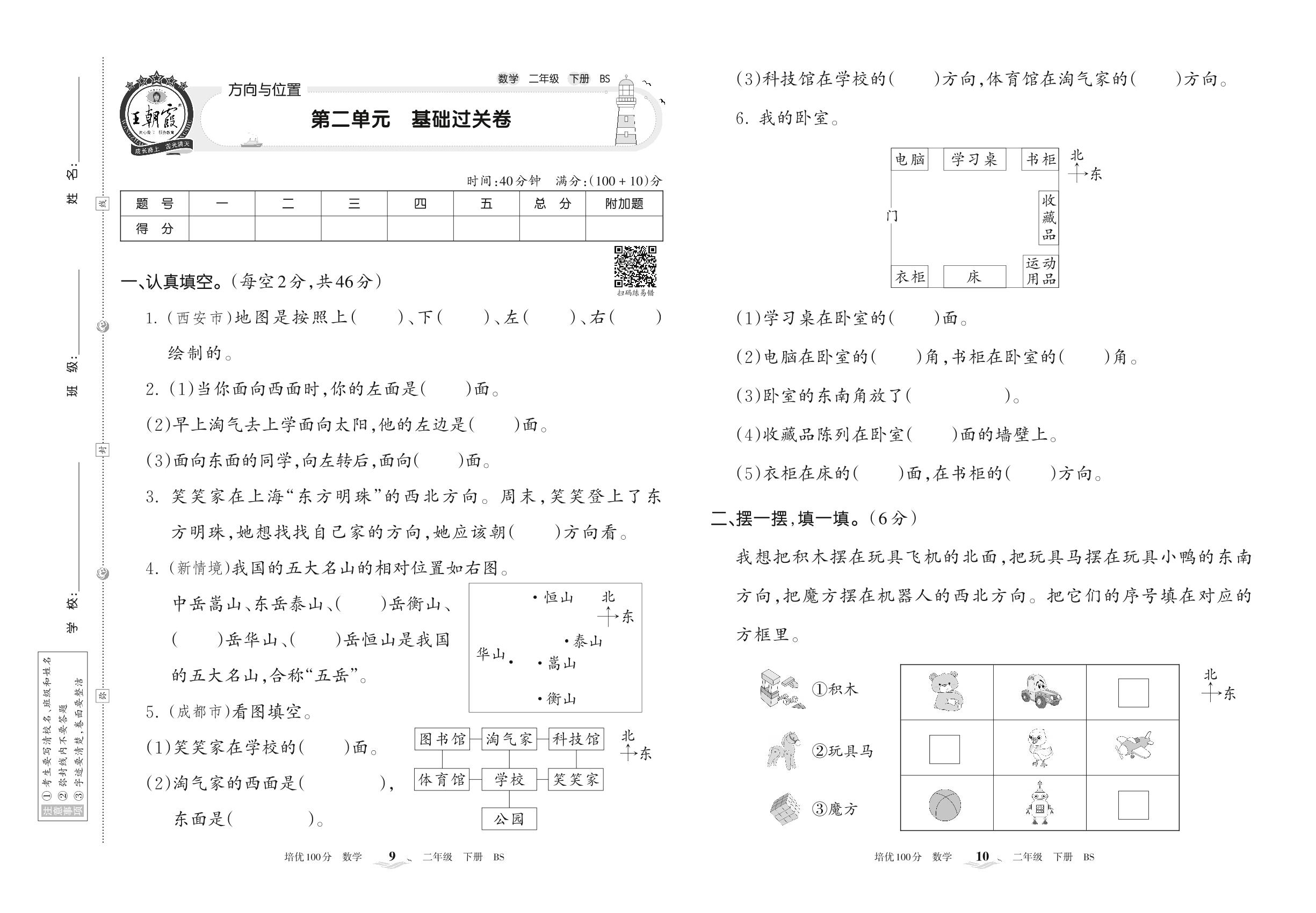 2022下册二年级数学北师版 第二单元 基础过关卷
