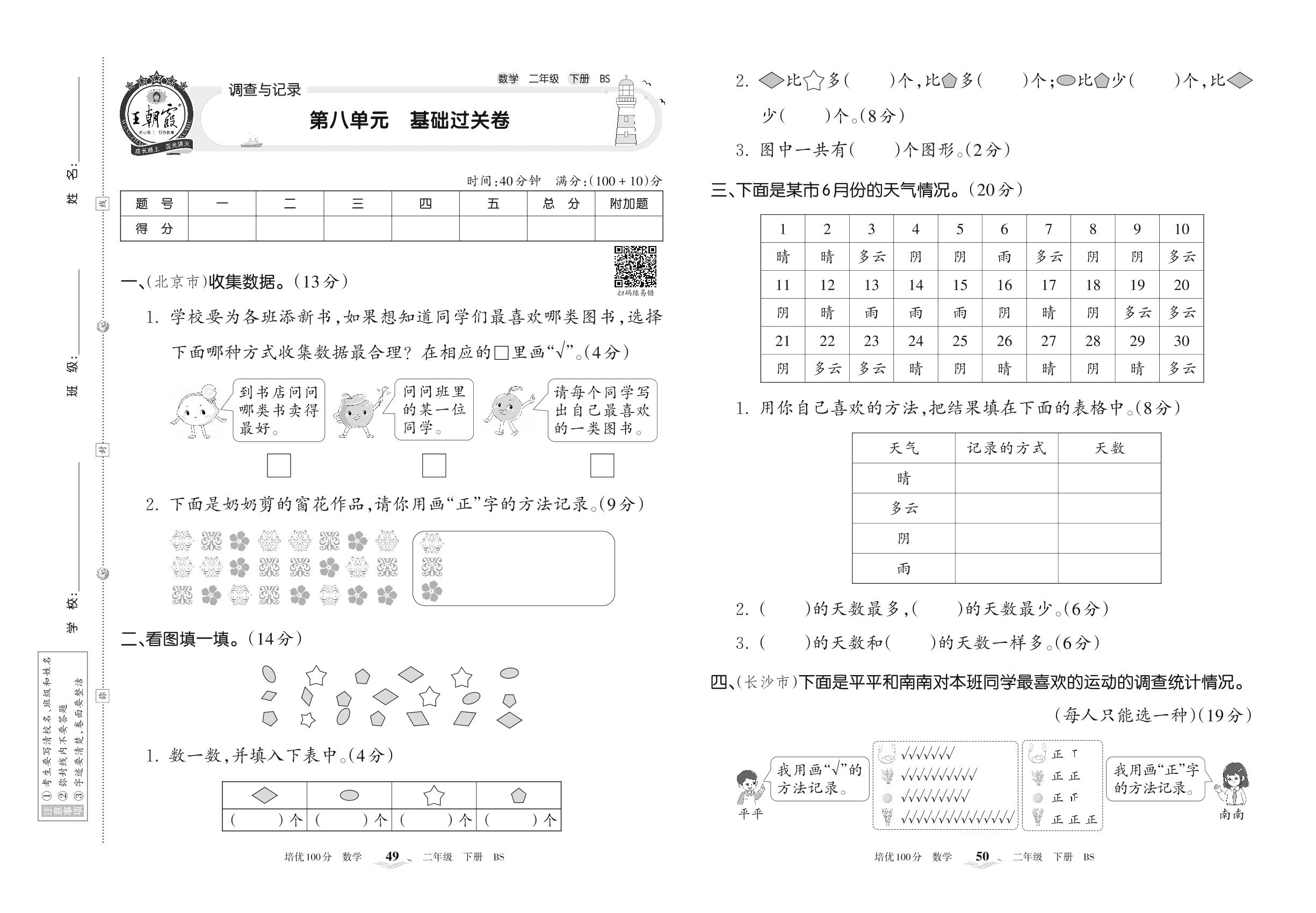 2022下册二年级数学北师版 第八单元 基础过关卷
