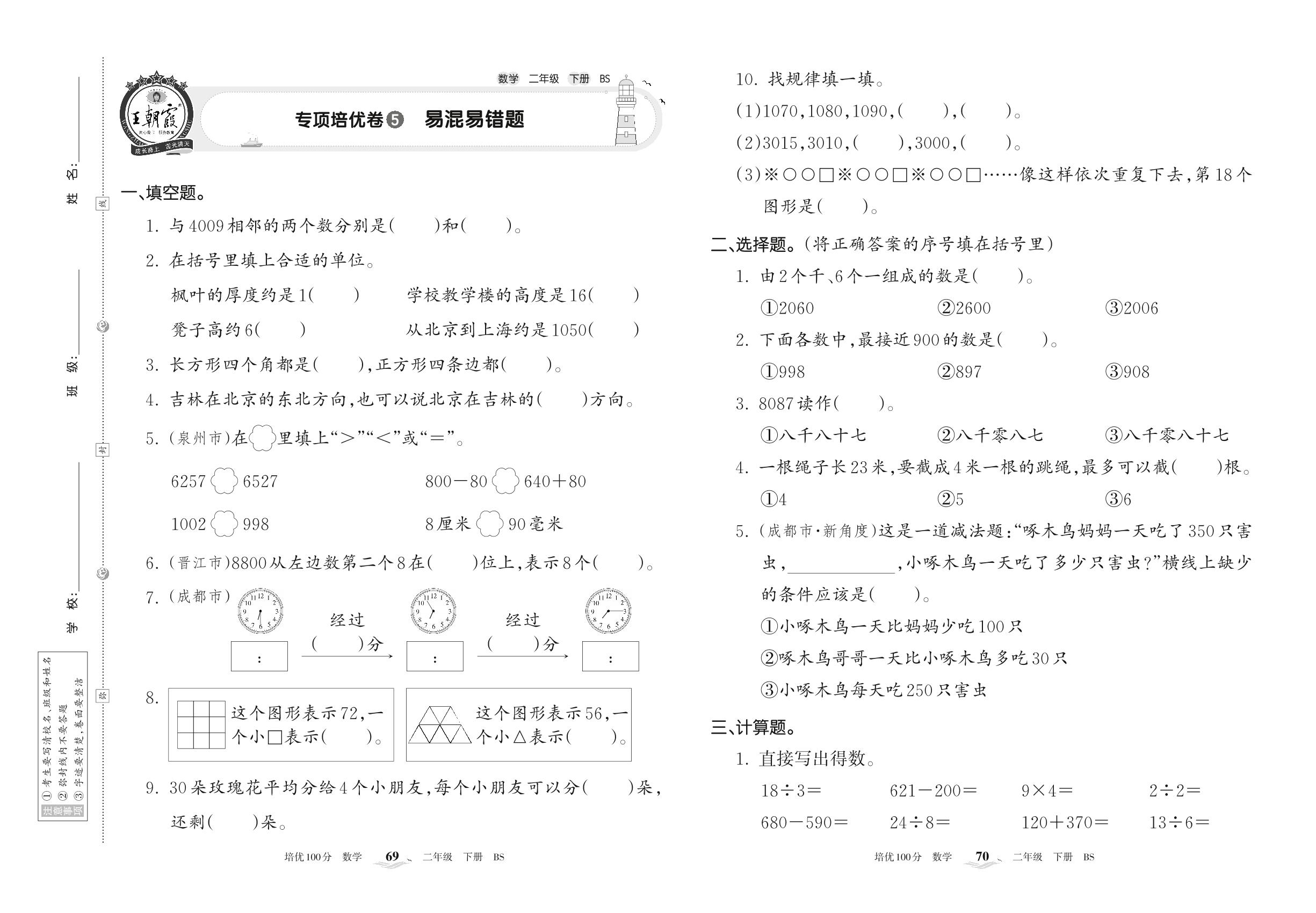 2022下册二年级数学北师版 专项培优卷5 易混易错题