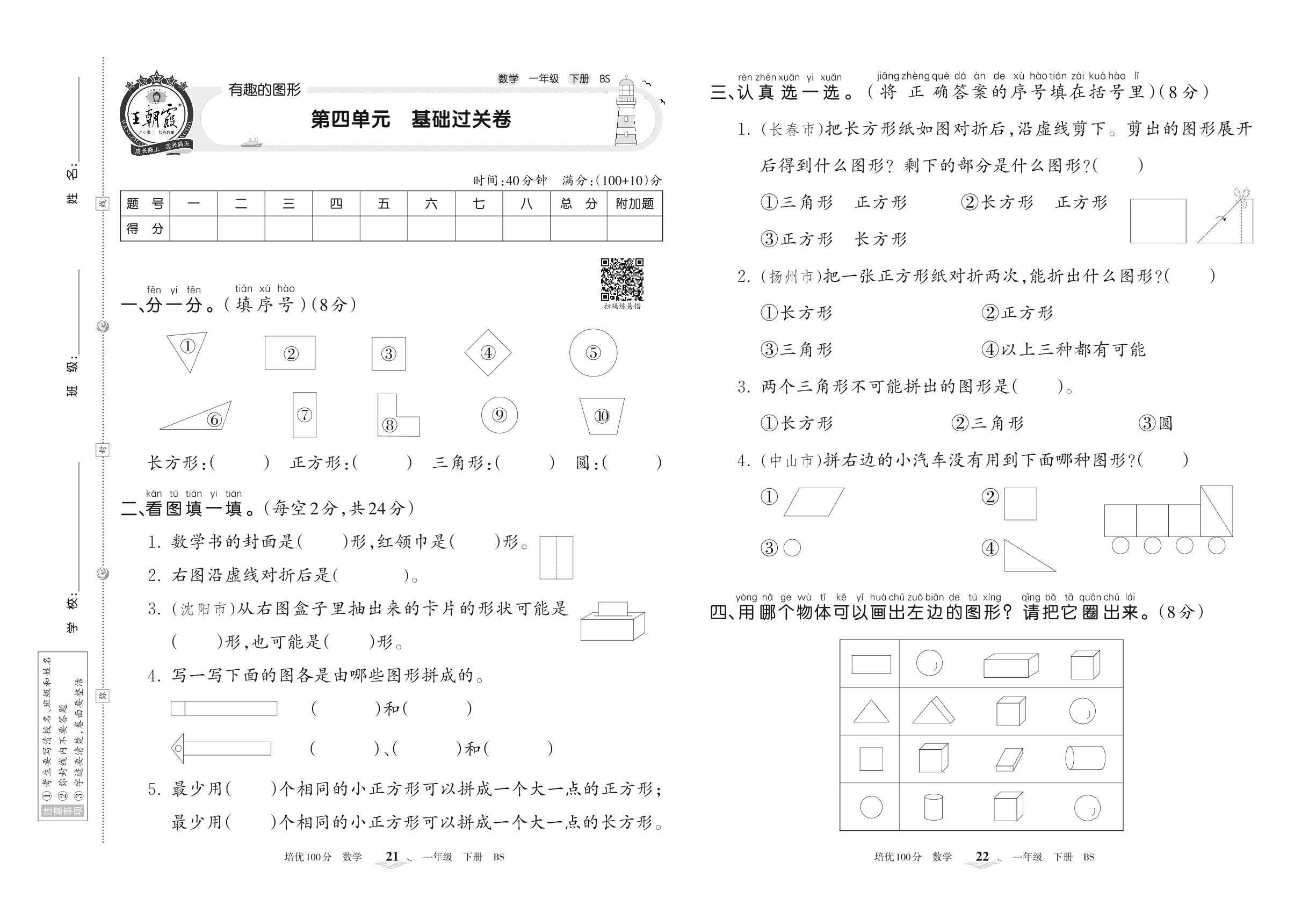 2022下册一年级数学北师版 第四单元 基础过关卷