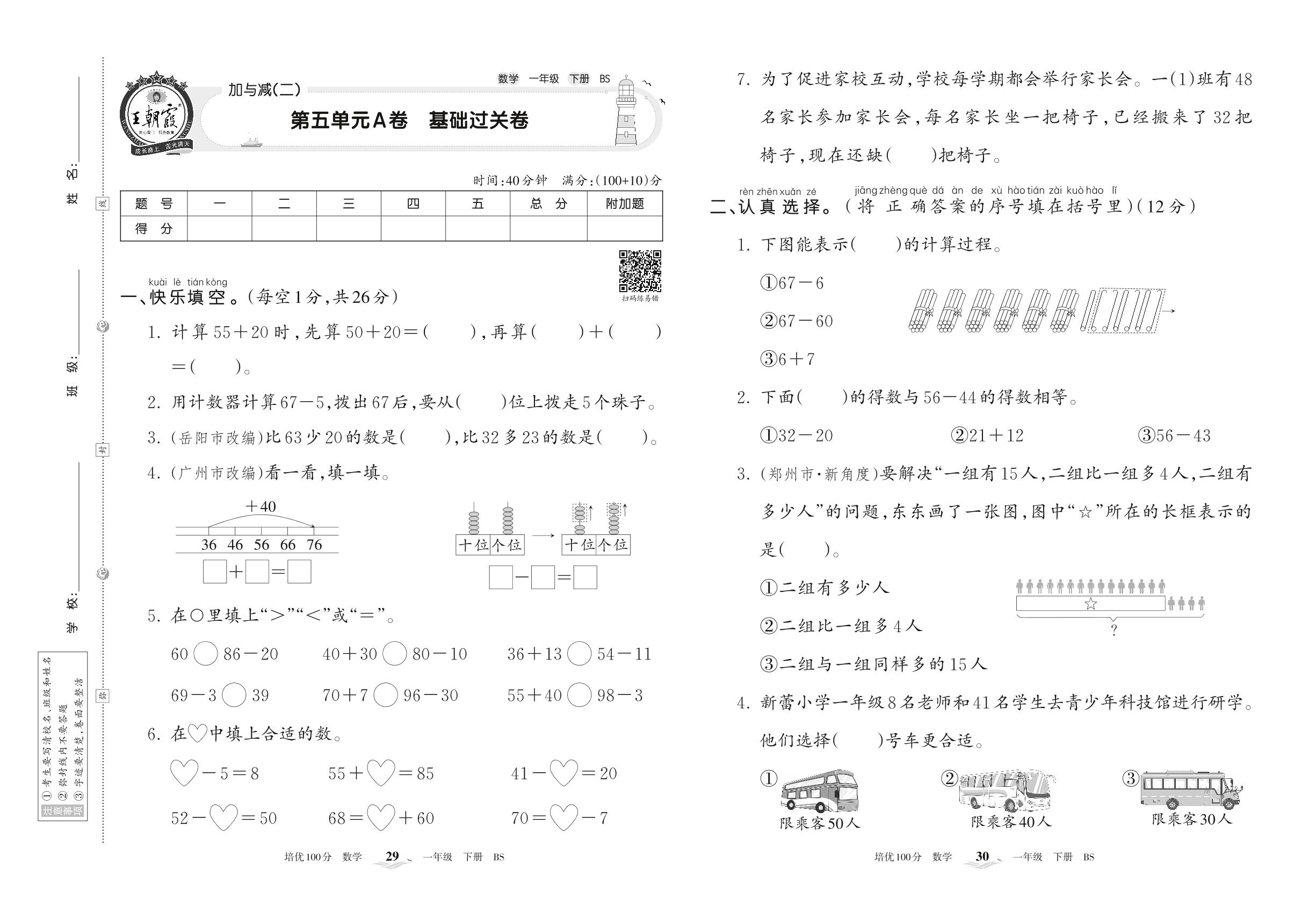 2022下册一年级数学北师版 第五单元A卷 基础过关卷
