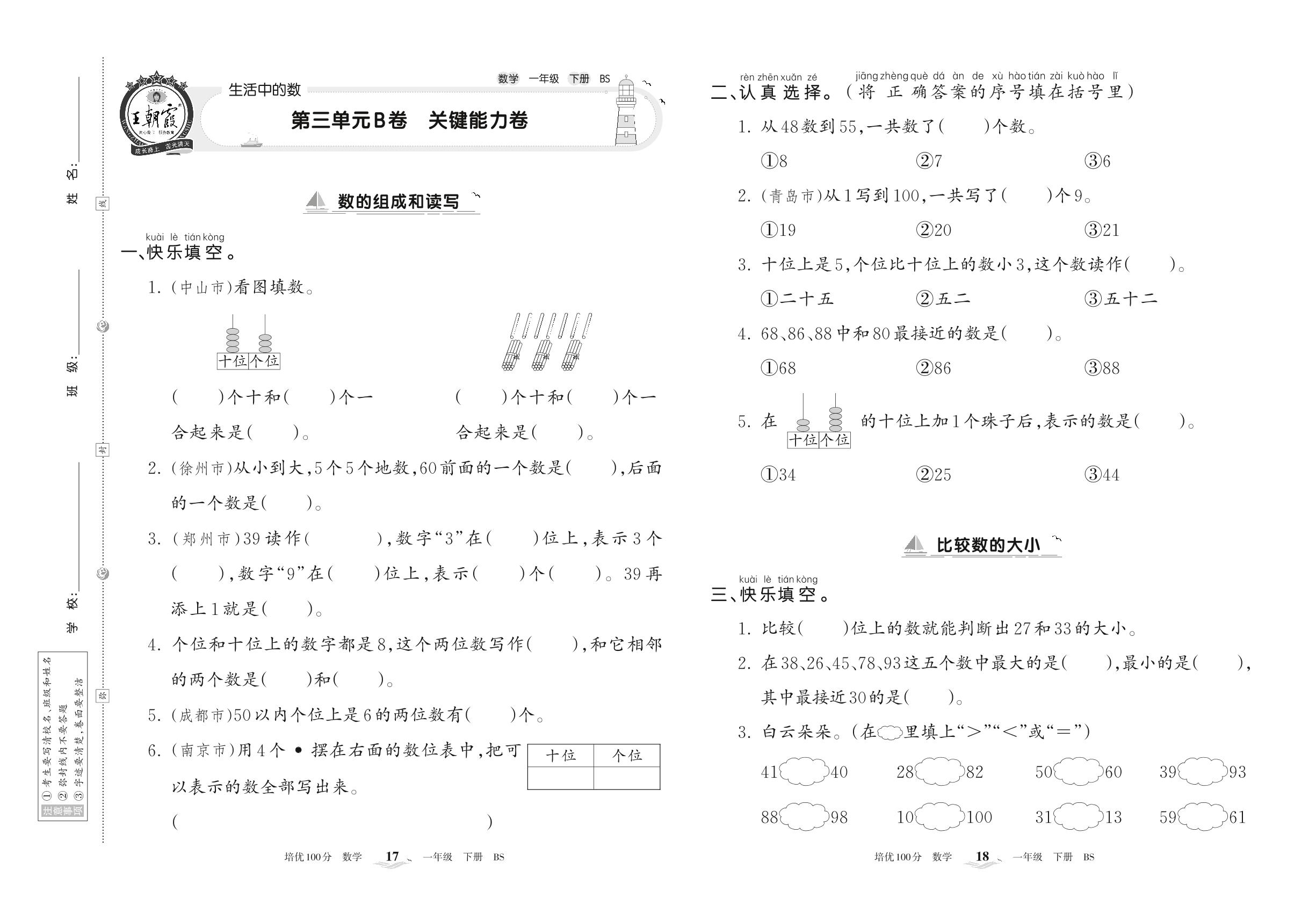 2022下册一年级数学北师版 第三单元B卷 关键能力卷